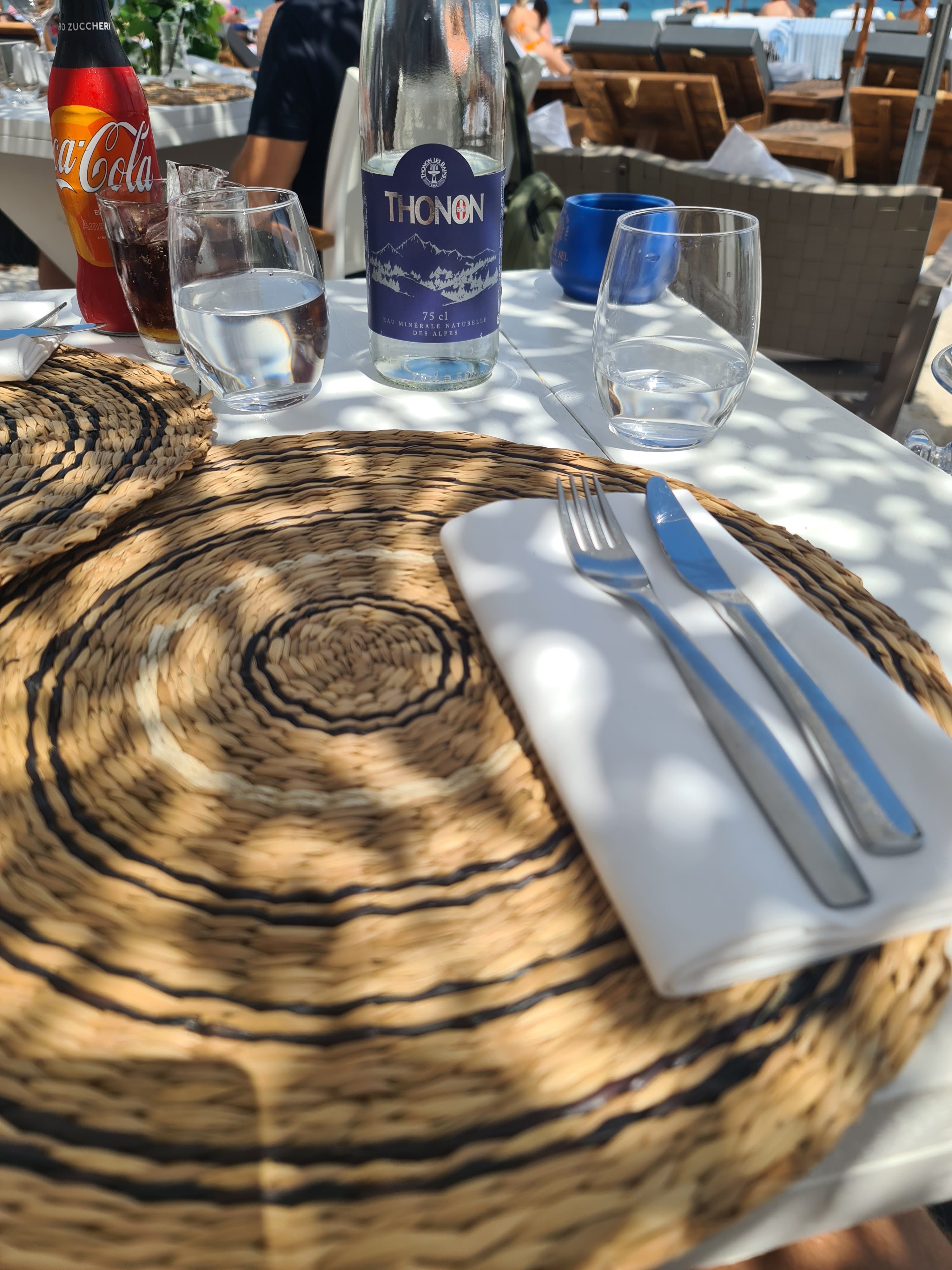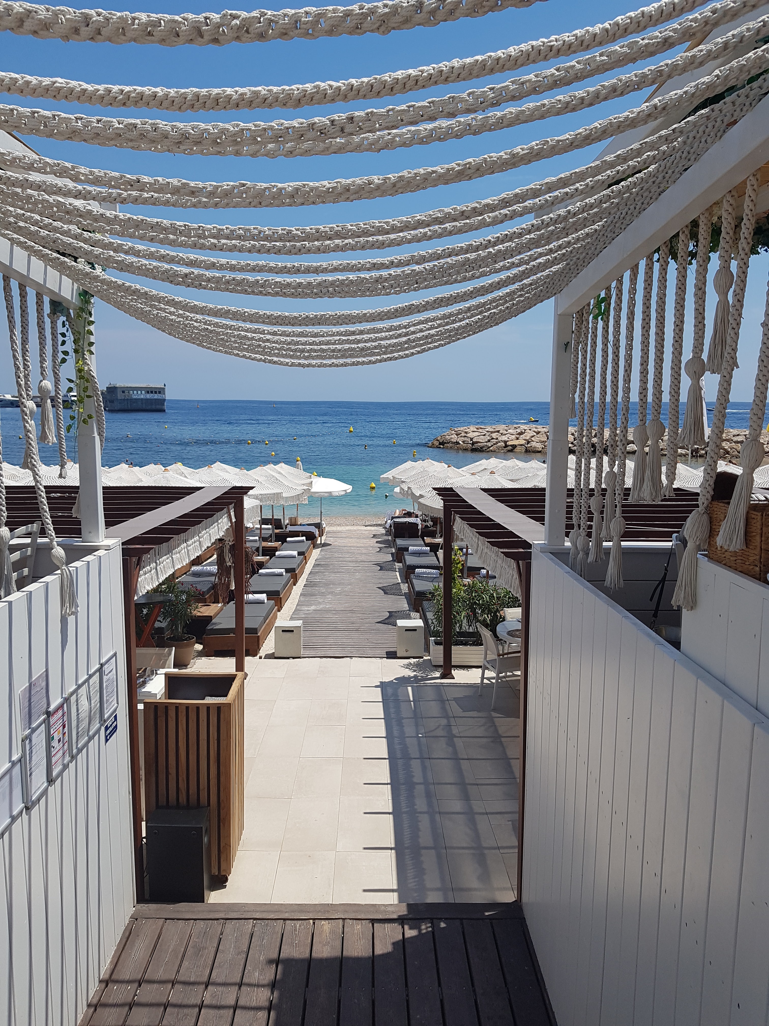 Plage privée très chic et chère près de Monaco. 35€ le transat à la journée. 29 euros le filet du loup aux légumes et 12 euros l'Aperol Spritz. Le matelas est confortable mais les parasols laissent trop passer le soleil. Le service est certes haut de gamme, mais n'en vaut toujours pas vraiment la peine. Pour nous, c'était bien car nous avons laissé la voiture sur le parking le soir et sommes allés nous promener à Monte-Carlo pour dîner au Planet Pasta.