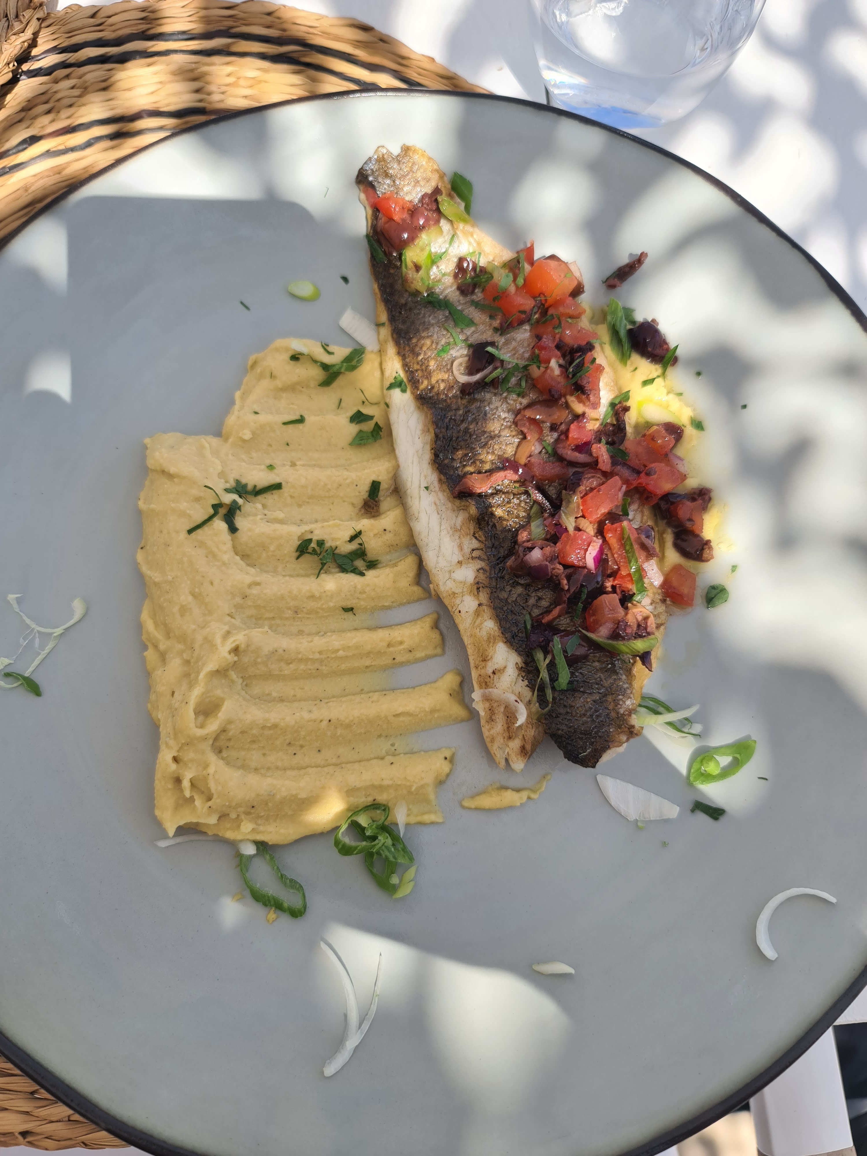 J'ai dîné ici le mardi soir en septembre. Le lieu était assez calme avec beaucoup de tables, nous étions un grand groupe de 11 personnes. Nous nous sommes assis dehors par une chaude soirée avec une belle vue et avons eu une sélection d'entrées (ceviche de thon, salade grecque, calamars) qui étaient bien préparées et présentées. . Pour le plat principal, j'ai partagé un bar qui était encore une fois très bien cuisiné et présenté. Le service était excellent, discret mais ponctuel. L'eau et le vin étaient rafraîchis au besoin. Dans l'ensemble, c'est une très bonne expérience.