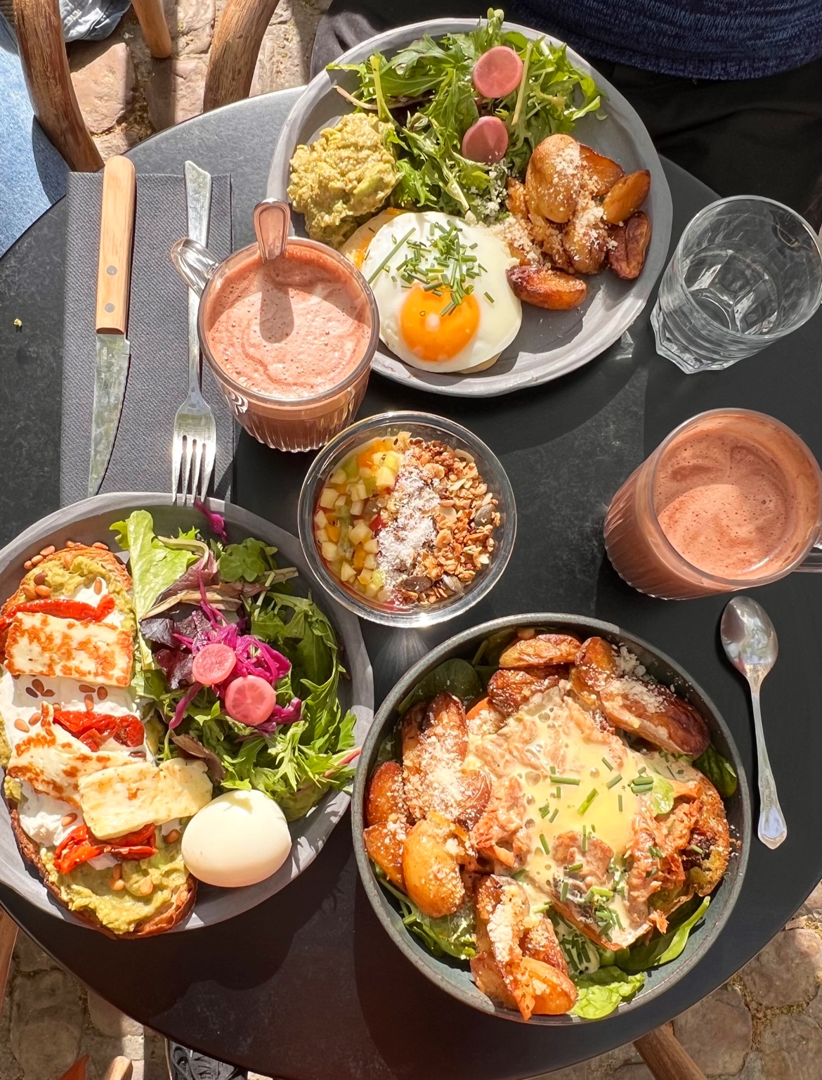 Portions généreuses et bonne qualité de produits. Le saumon fumé, excellent! Cappuccino parfait. Le smoothie fruits rouges un peu amer. Pas certaine pourquoi mais bon tout de même très bon. Service super! J’avais lu que le service était lent mais je trouve qu’ils gèrent, au contraire, surtout considérant à quel point l’endroit est populaire et rempli. J’y suis allée jeudi vers midi. J’ai trouvé comparable a Amazone café mais meilleure ambiance avec la belle place de la Canourgue et meilleur qualité de produits. Bravo!