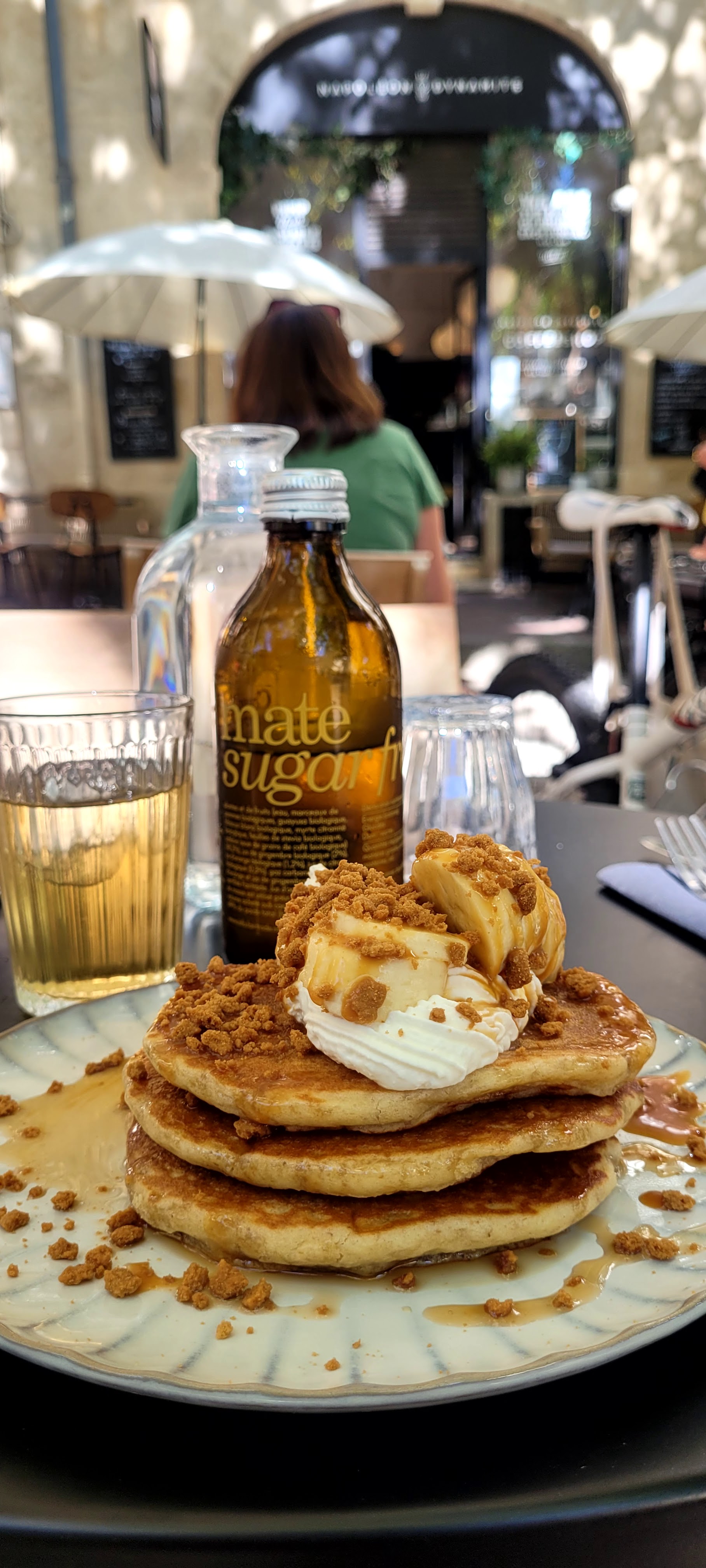 Très belle place de la Canourgue, accueil sympathique, très bon Layer Cake aux fruits rouge, en revanche pour les pancake je m'attendais à plus savoureux plus moelleux. Jus d'orange servit dans un verre à vin (quantité minim, apparement plus de verre à jus d'orange dispo au bar).