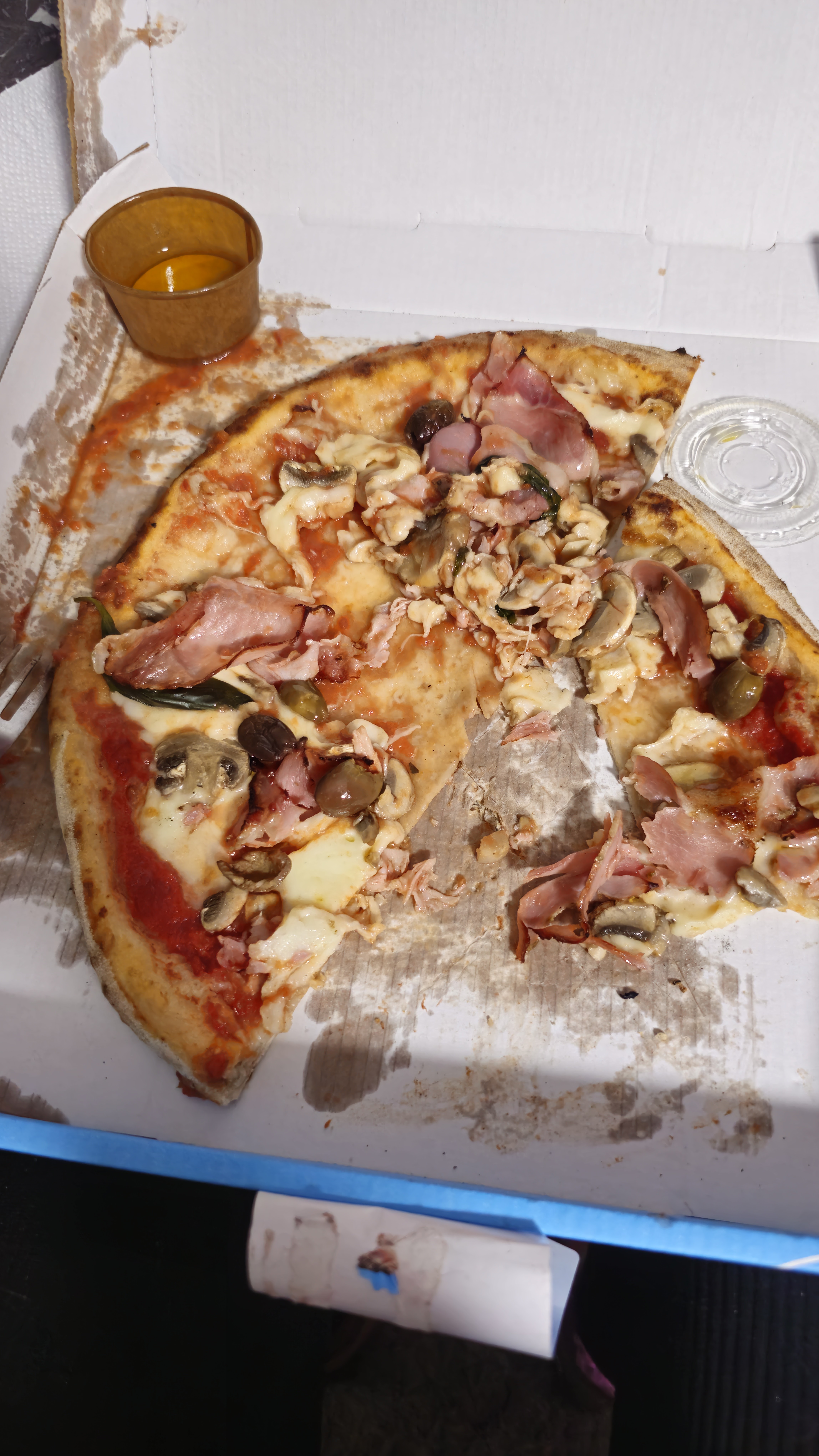 J'avais commandé avec uber une cheese pizza et une Regina et j'avais l'offre promotionnelle une achetée une offerte. Le livreur est arrivé avec des pizzas quasi froides et seulement une et non l'offre promotionnelle si j'avais passé par uber c'est précisément qu'étant en déménagement je n'avais plus de four . Je déconseille donc forcément car c'est malhonnête de livrer quasi froid (et bcp d'attente) mais en plus de ne pas appliquer l'offre promotionnelle