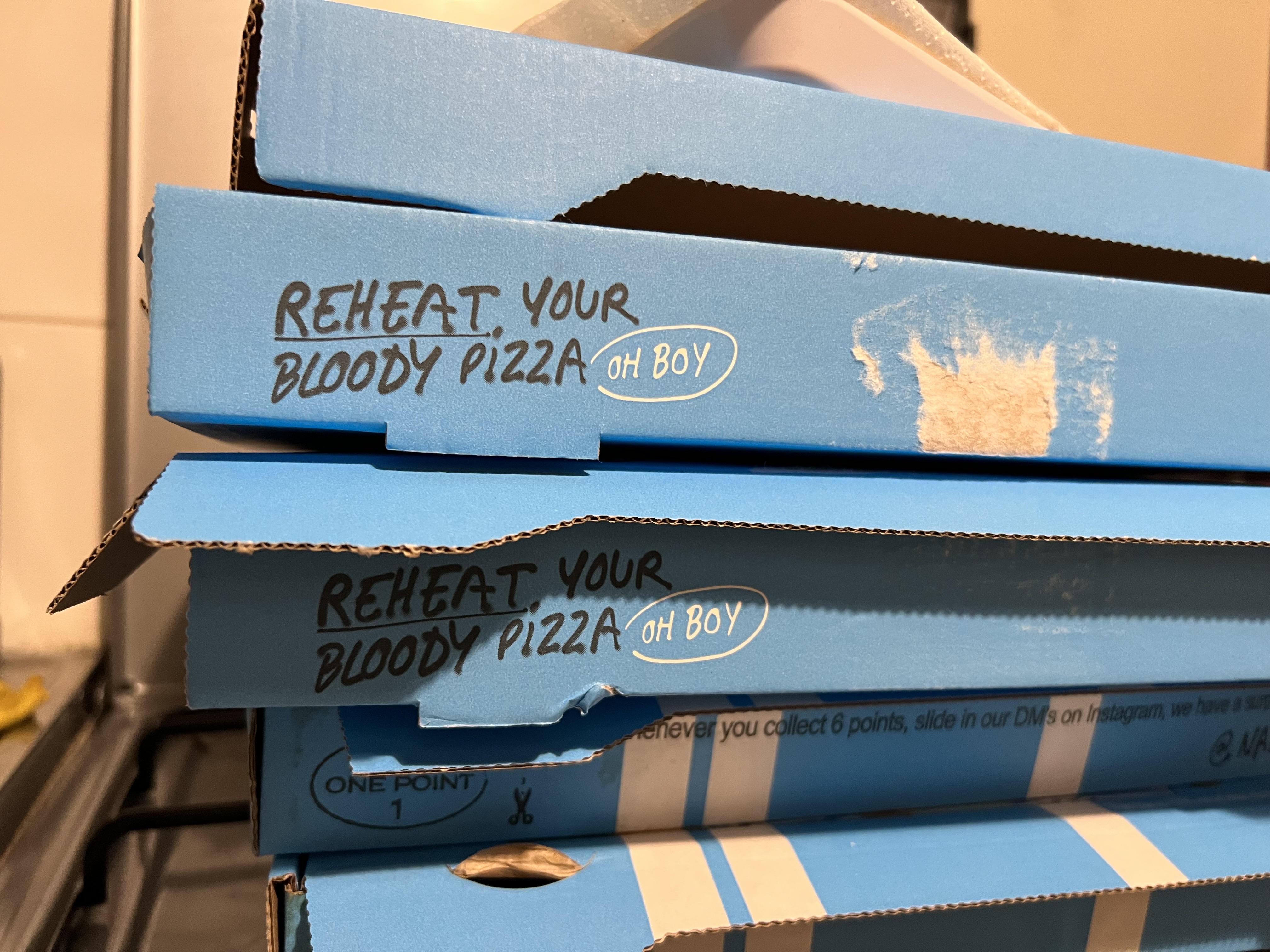 Réchauffer? Est-ce une farce? Je n'ai jamais eu de Margherita payée 10 € livrée froide en me demandant de la réchauffer avec un four que je n'ai peut-être même pas. Les gars, je suis italien. 10€ une Margherita froide ? Le carton coloré ne la réchauffe pas.