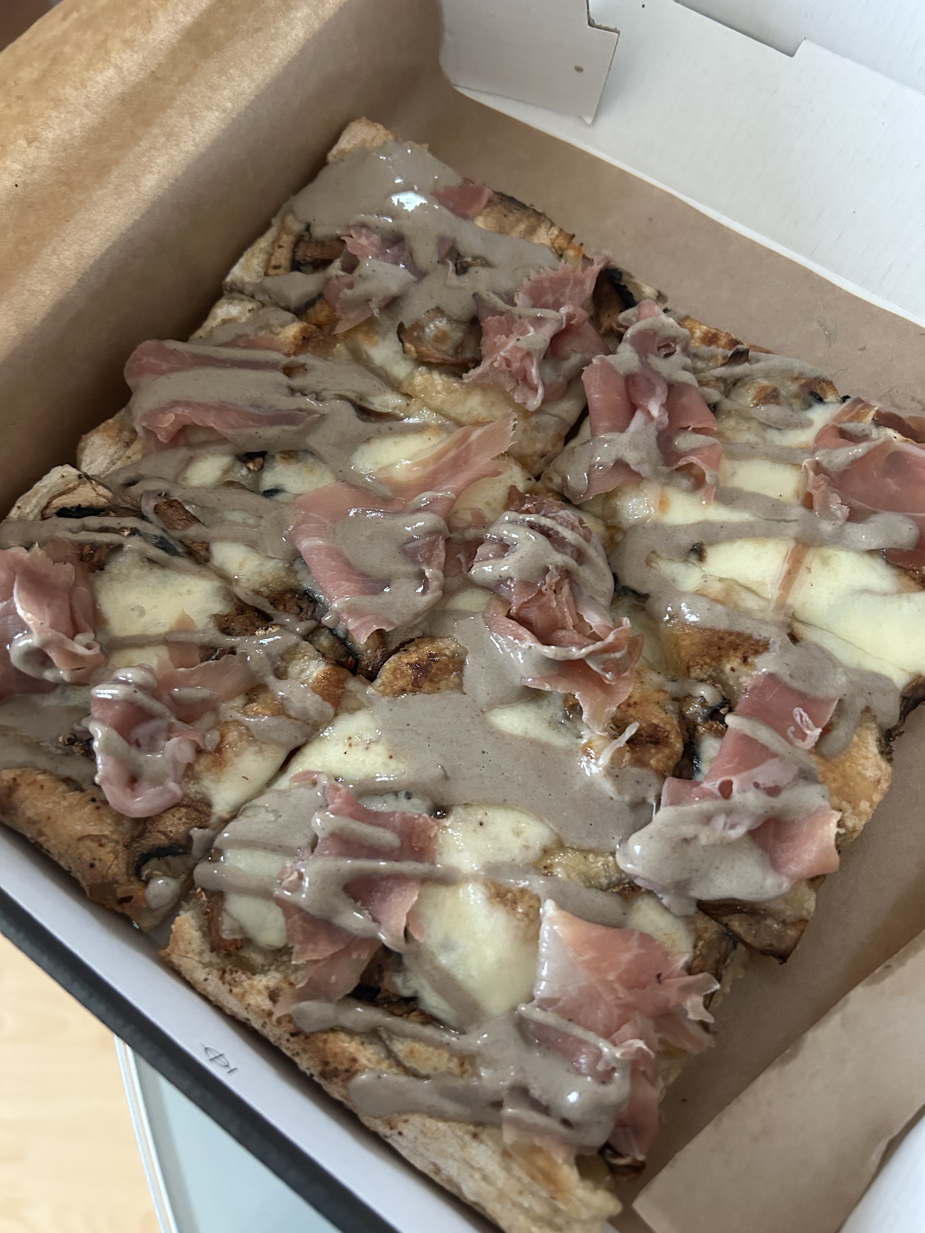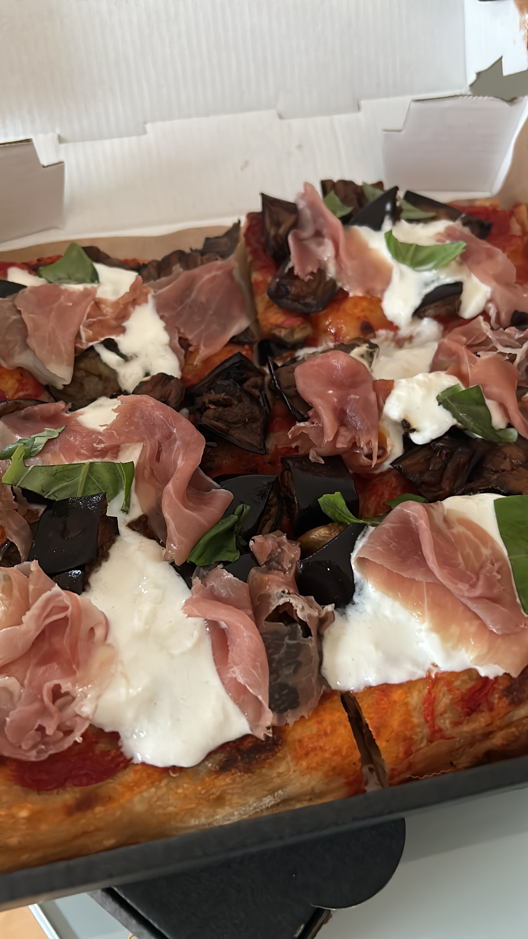 Des tranches de pizza fantastiques (ou Pizza al Taglio pour les Italiens) qui m'ont rappelé la maison - je les ai livrées et elles se sont bien conservées