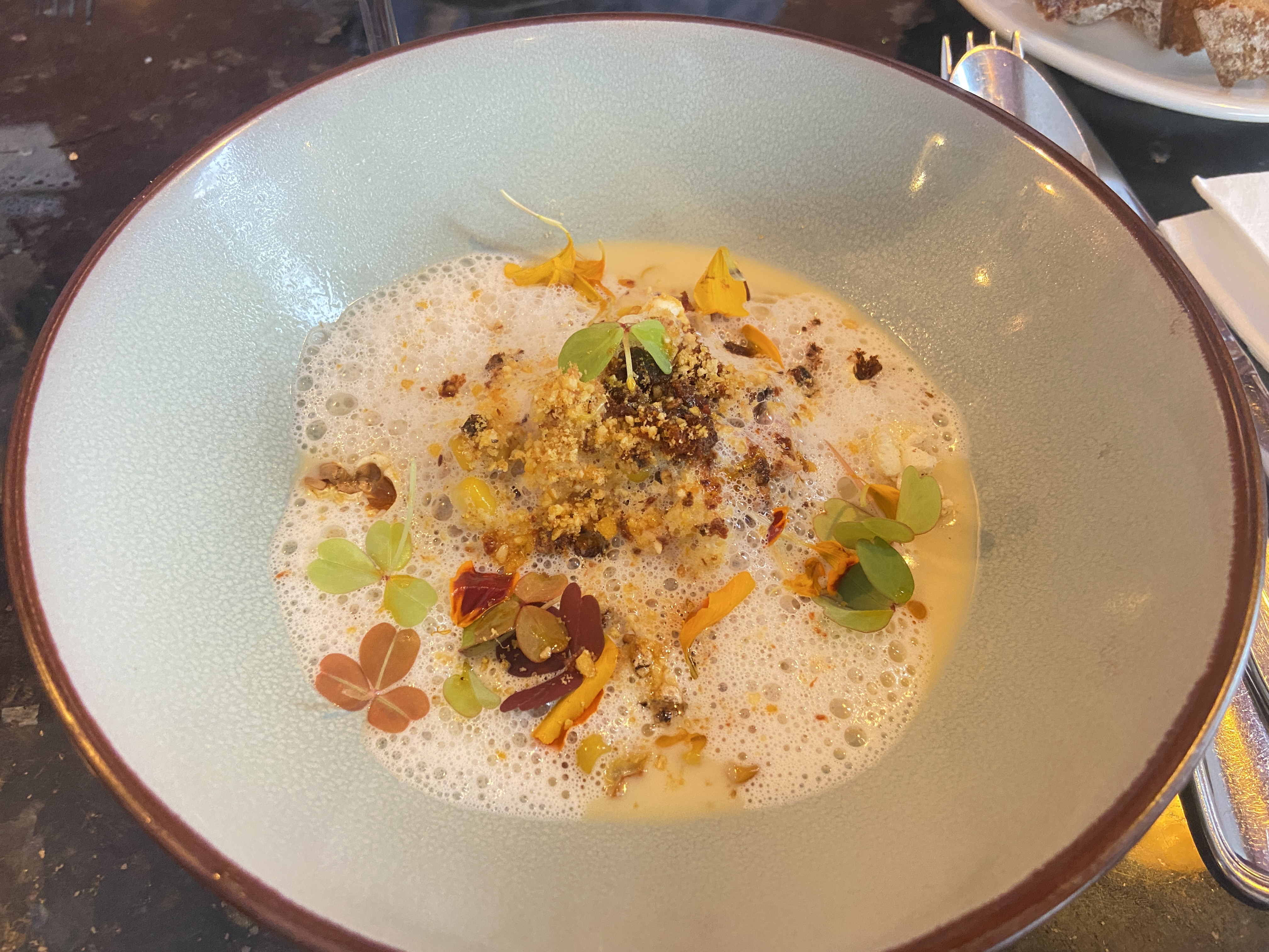 Les notes laissaient penser que ça serait une superbe expérience. Il n'y a rien de raté mais il n'y a rien qui donne envie de revenir. À 60€ par personne pour entrée, plat et verre de vin un dimanche midi c'est très décevant. Il y a beaucoup trop d'accompagnements au siphon.