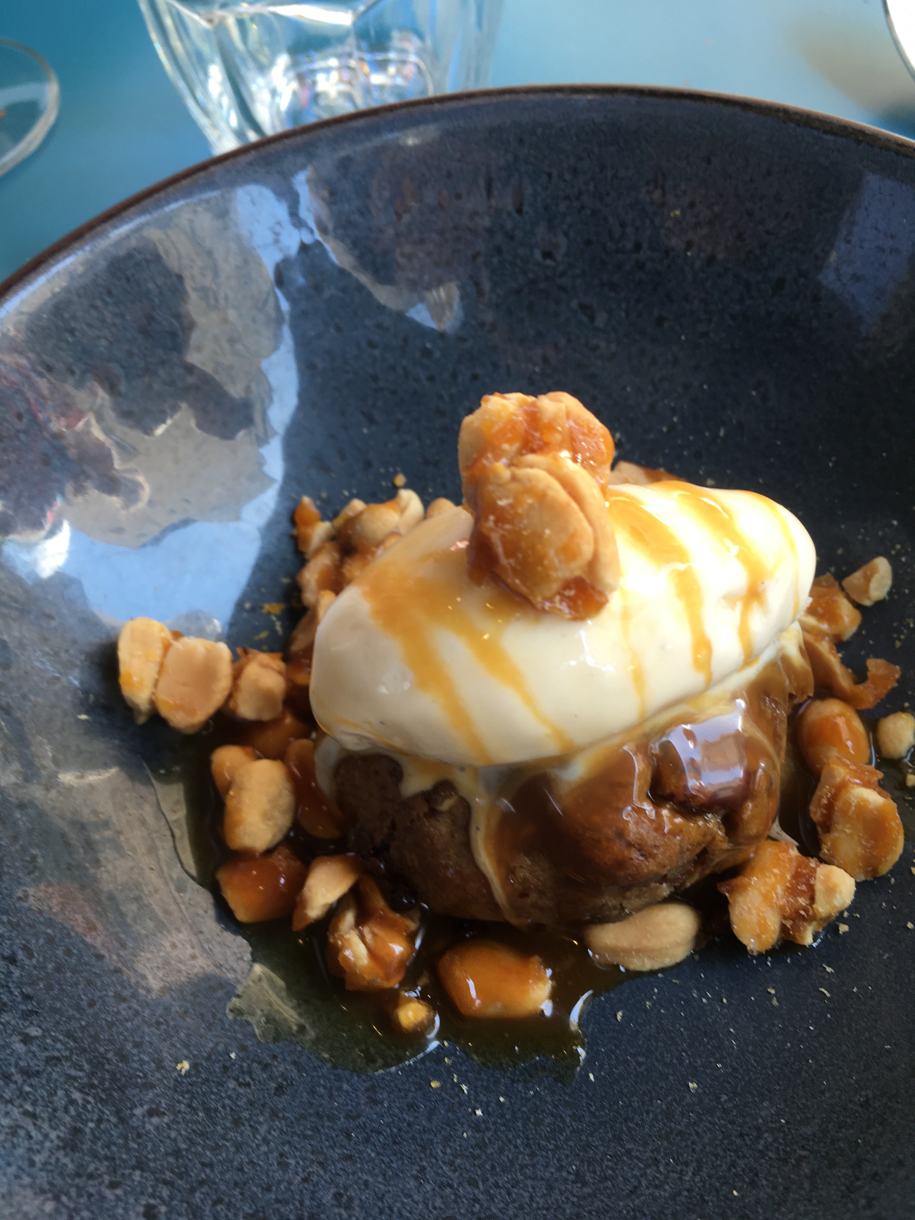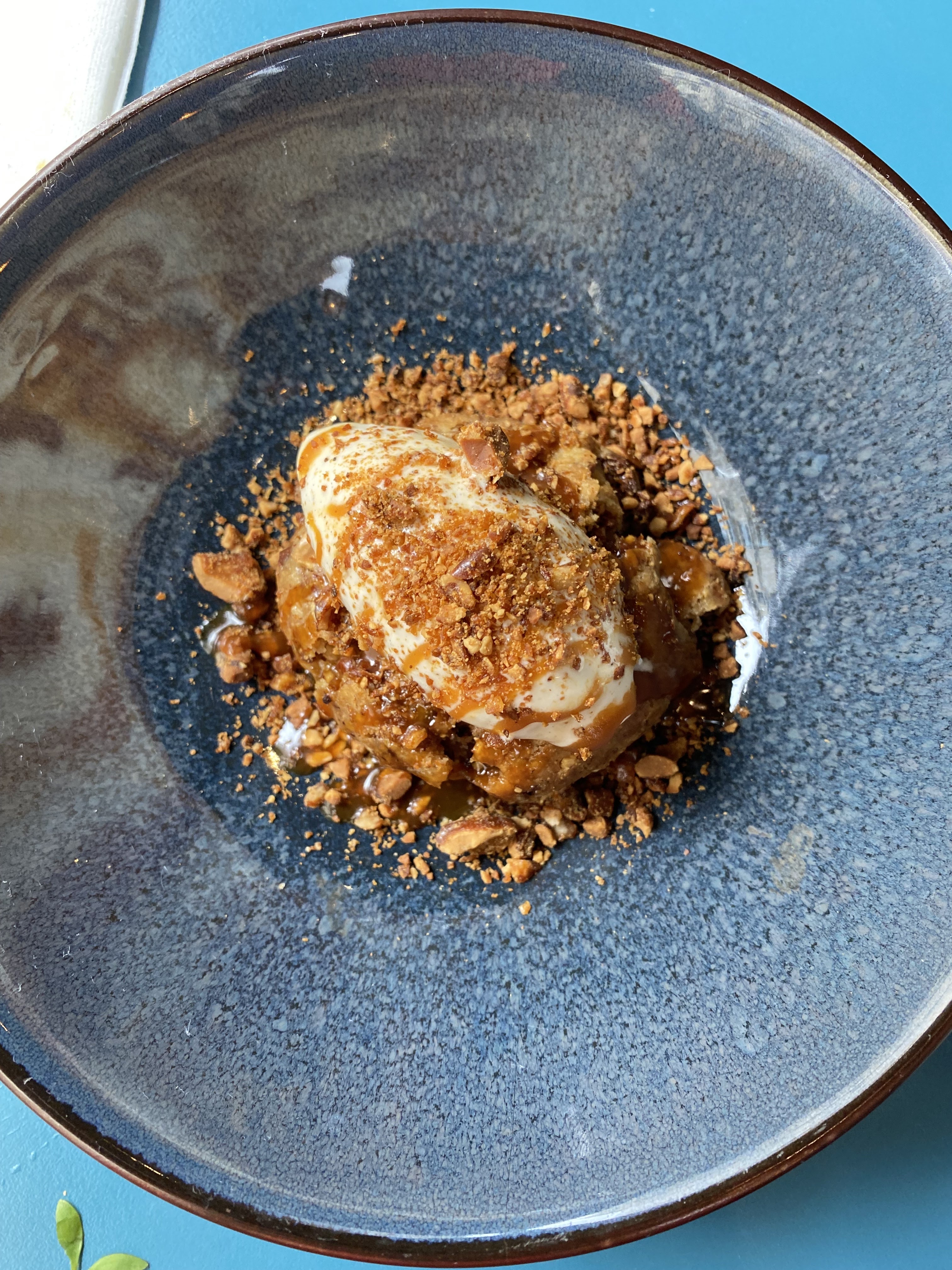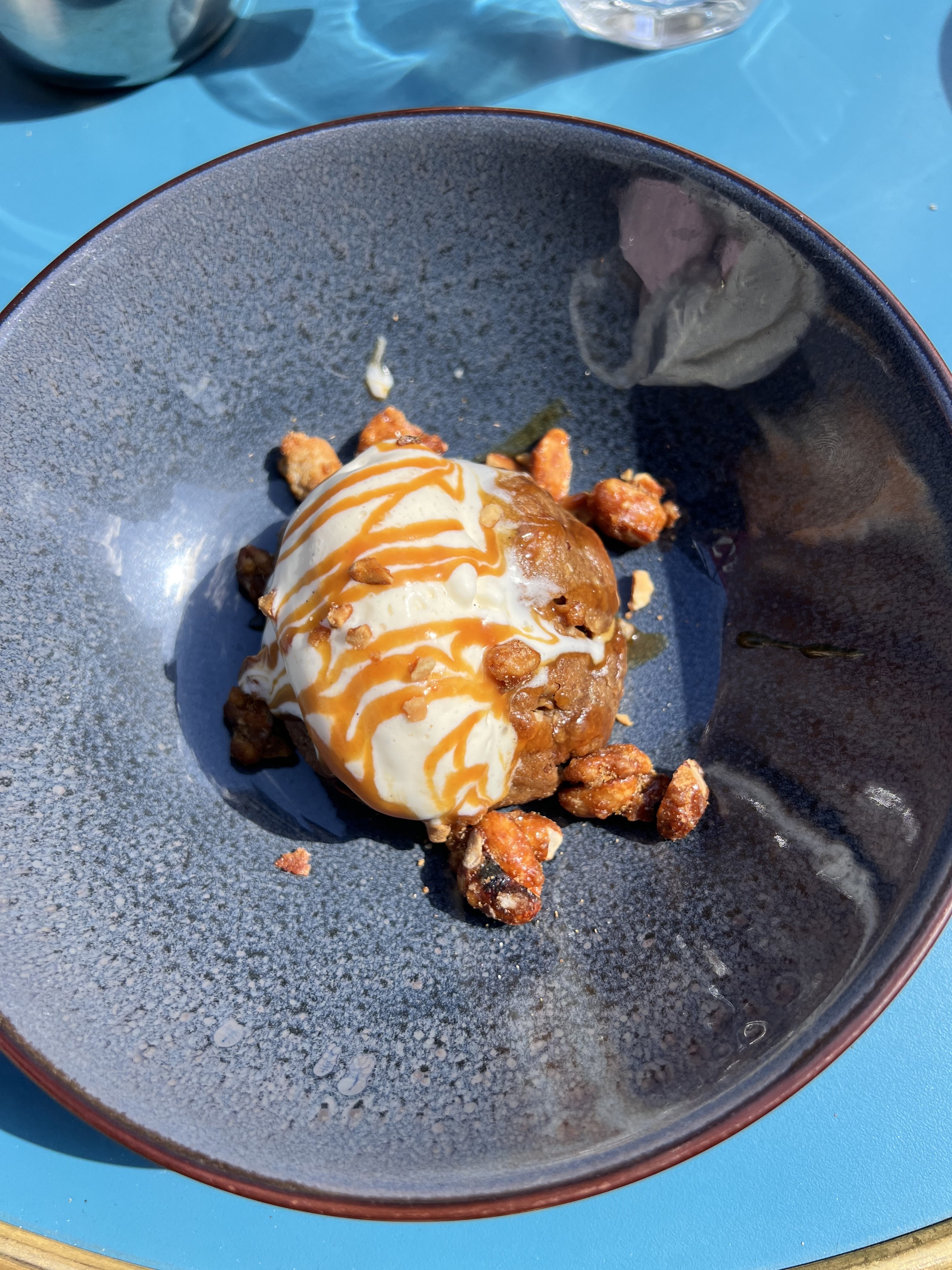 Nous avons eu la chance de pouvoir prendre une table sans réservation. Le service était effectivement lent. J’avais l’impression que le personnel était débordé et stressé par le nombre disproportionné de clients. La nourriture était assez originale et savoureuse, y compris la soupe pop corn. Leur salade était décevante pour le prix tandis que le poisson du jour était agréable. Nous avons adoré leur vin blanc, mais pas tellement le rouge et l'orange. La glace fondue dans les desserts était vraiment décevante (voir photo) et cela s'est évidemment déjà produit, comme je l'ai lu dans d'autres critiques ici. Cela peut être un bon endroit pour dîner pour une fois si vous êtes patient et ne cherchez pas de plaisanteries décontractées avec le chef/le personnel.