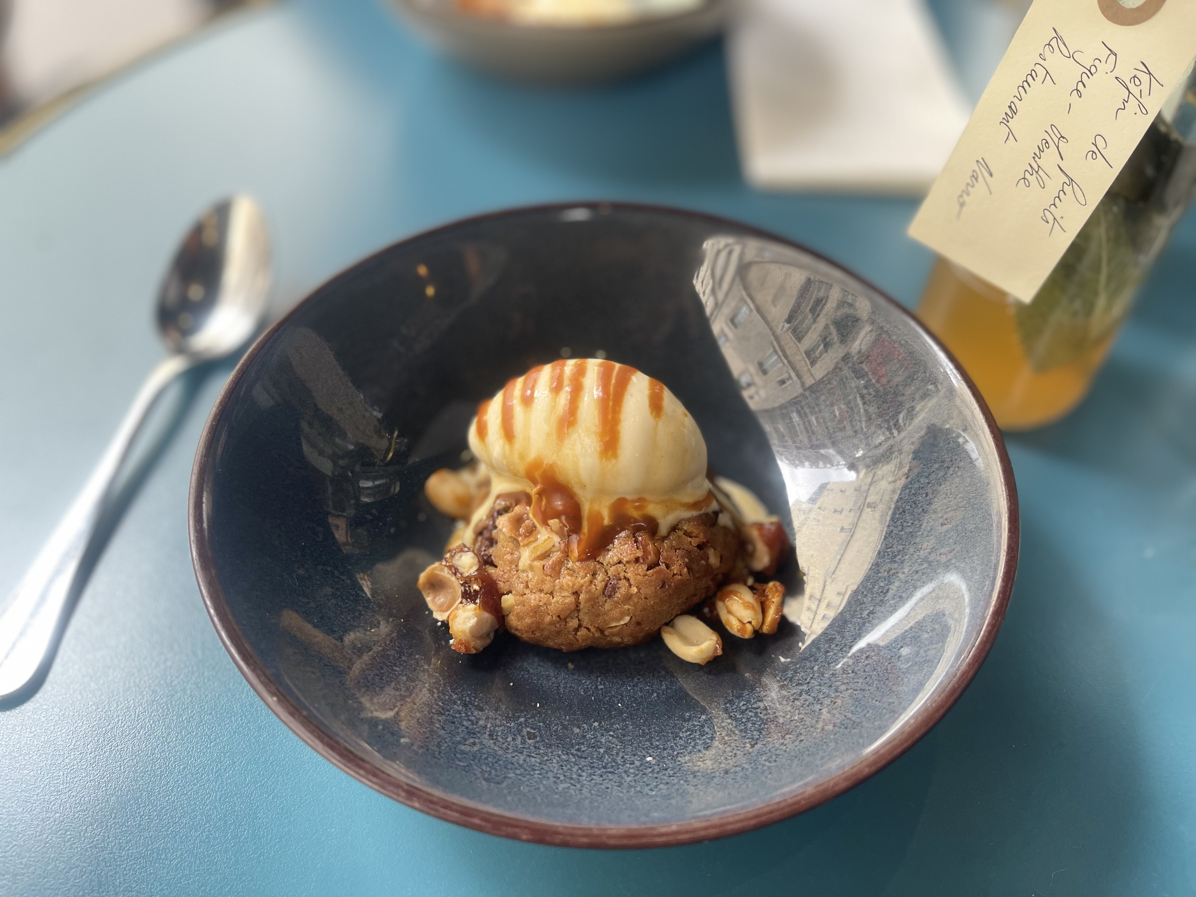 Repas incroyable, valeur incroyable. Narro est peut-être un petit restaurant : mais l'accent est mis ici sur des saveurs fortes mêlant techniques françaises et éléments japonais. J'ai pris le déjeuner 3 plats pour 36 euros. Commençons par l'entrée : crème d'artichaut avec un œuf poché parfait, anguille fumée et émulsion de paille. Quelle combinaison unique, et cela a fonctionné à merveille. C’est le genre de plat où l’on se dit « Je n’ai aucune idée de comment ça peut marcher, mais c’est le cas ». Le pour le plat principal : canard. Parfaitement cuit et extrêmement moelleux, accompagné d'une riche réduction de vin rouge. Je n’exagère pas en disant que ce canard était aussi tendre que celui des restaurants étoilés Michelin. La mousse du Mont-d’Or (fromage français) était intéressante et a permis de couper la purée de carottes. Pour le dessert, j'ai dû prendre la pâte à biscuits mi-cuite. Celui-ci a fait mouche : à la fois croustillant sur le dessus, fondant sur le dessous, avec de la glace vanille, du caramel au beurre salé maison et des cacahuètes caramélisées. Rien de prétentieux, un dessert tellement décadent et satisfaisant. La façon idéale de terminer le repas. Un lieu très prisé de Paris : assurez-vous de réserver à l'avance car il est souvent complet plusieurs jours à l'avance. Ça vaut le coup à 100%.