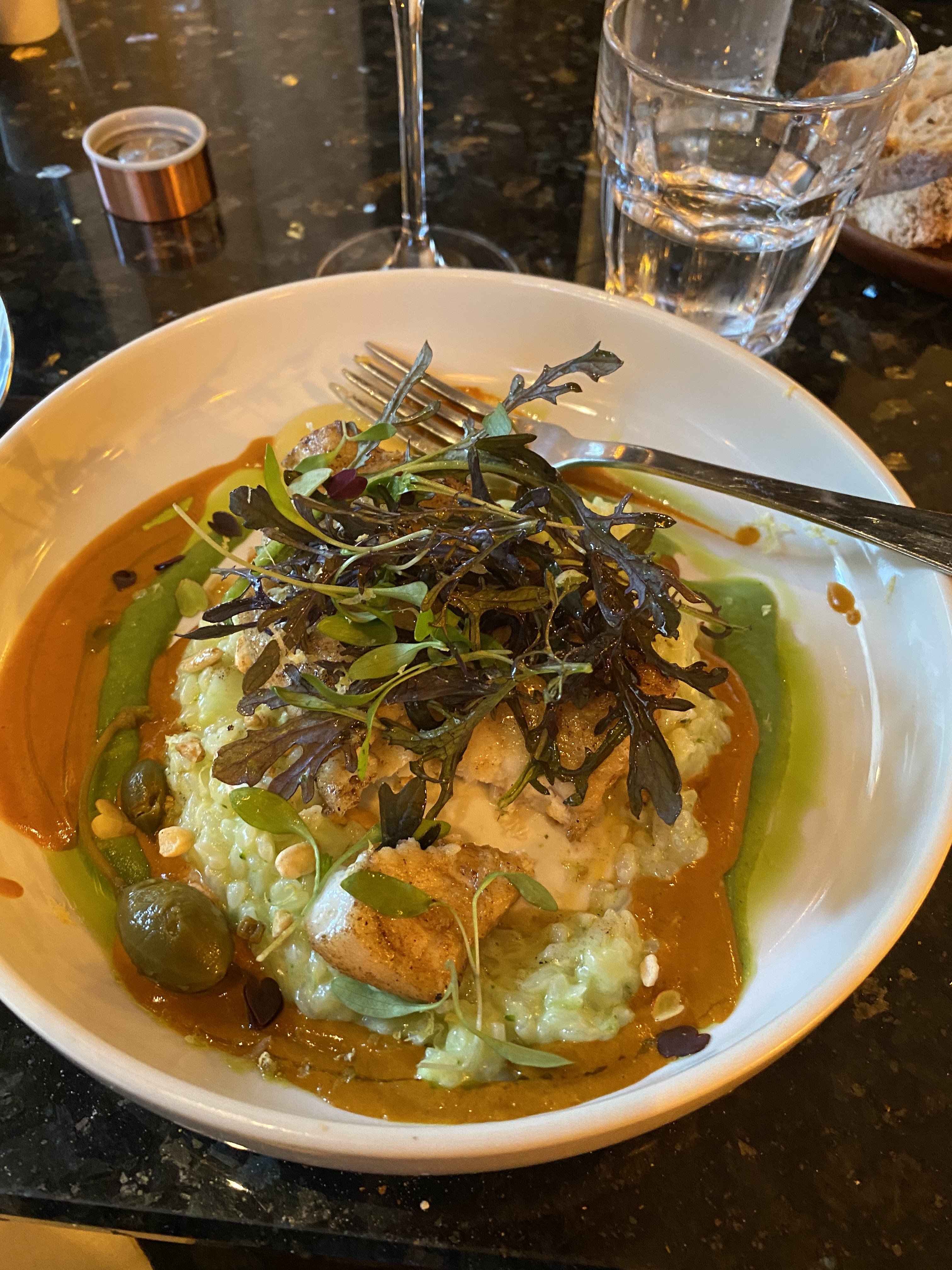 Le meilleur plat de poisson que j'ai jamais mangé ! Autant de procédés combinés pour créer un jardin de saveurs. Puis le désert est sorti, même expérience mais avec du chocolat. Délicieux!!