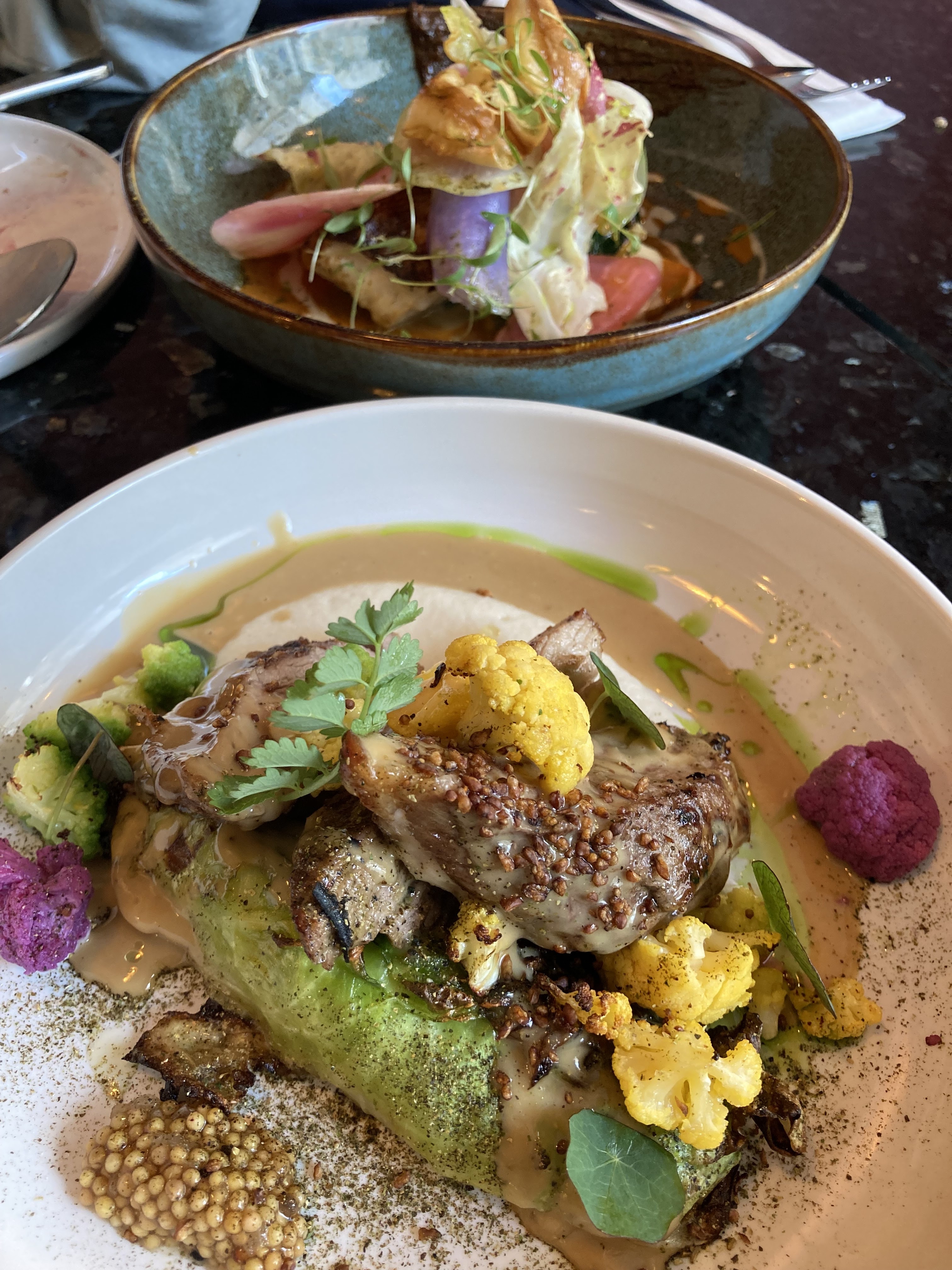 Plats non seulement beaux visuellement mais bons et colorés. Le crumble salé avec les légumes à tomber, l’entrée avec les betteraves top et le cookie … Super service 😃