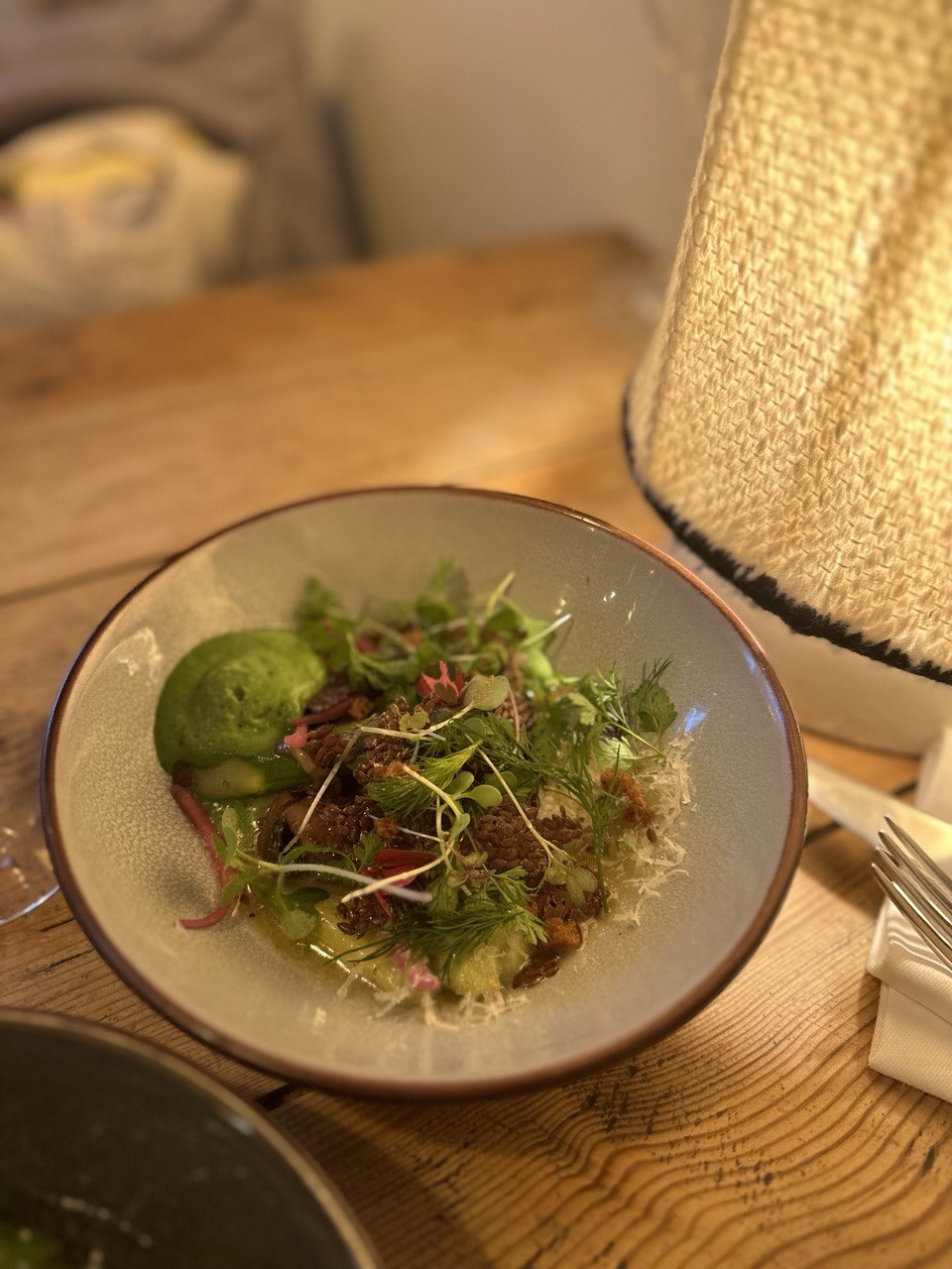 Déjeuner sublime @ Narro. Nous nous sommes assis dehors dans une rue calme d’un quartier charmant. Des présentations de plats époustouflantes, mettant l'accent sur des ingrédients frais et des saveurs délicates. Service agréable.