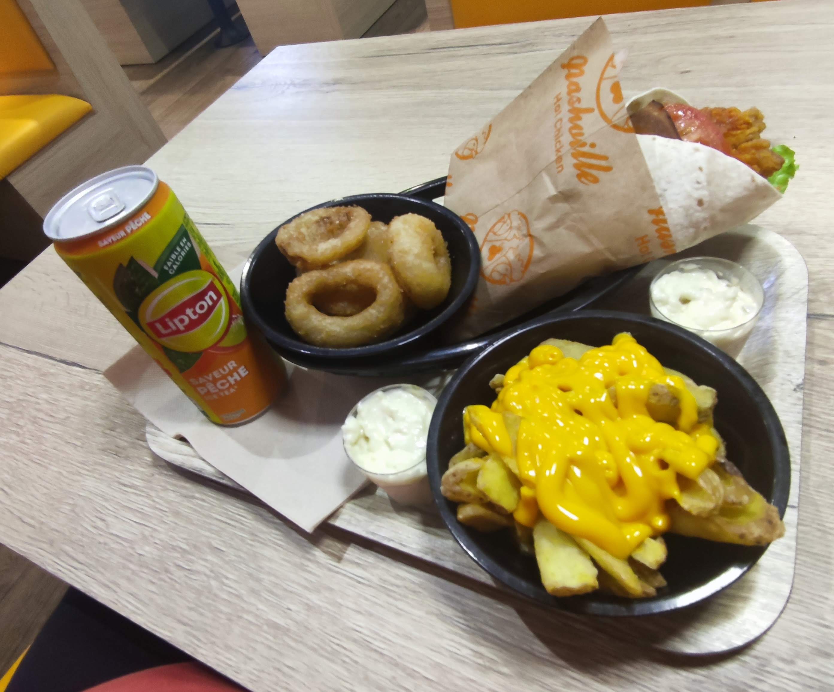 Le poulet est vraiment excellent, piquant comme il faut ! Les frites et les oignons ring sont aussi très bon.