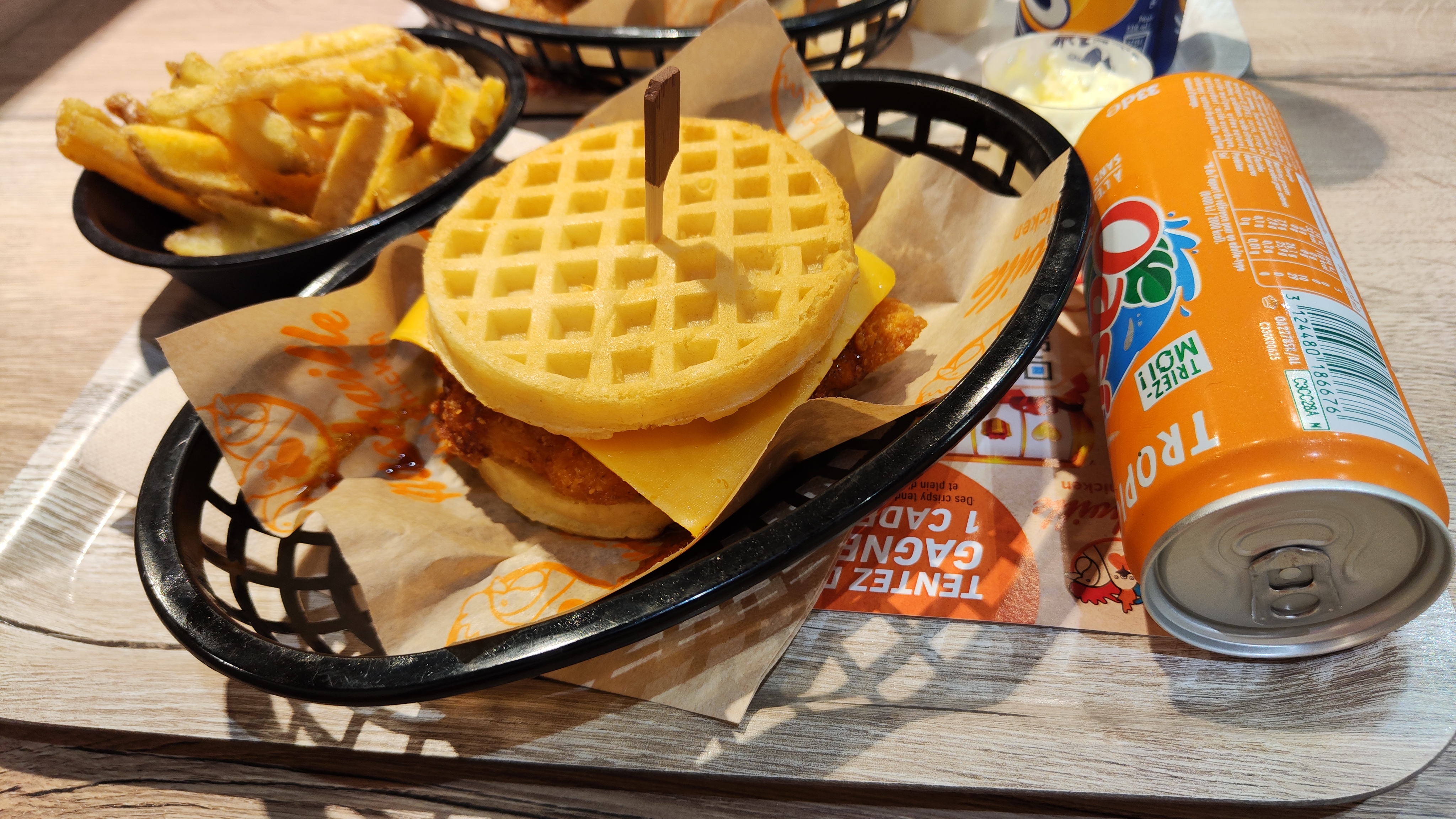 Très déçu ! J'ai testé le Waffle Burger, c'est trop sucrée ! La gaufre est molle et ne s'accorde pas avec les sauces (pas pimentée au passage et j'ai pris medium) Pareil pour les tenders, la marinade donnent un goût trop sucré, limite écoeurant ! On à pas l'impression de manger des plats salés, il y a juste le poulet dans les burgers qui est correct Frites quelconque, pas assez cuite et pas pratique en sachet papier quand on prend le cheddar avec Le service était très correct et personnel aimable Dommage...