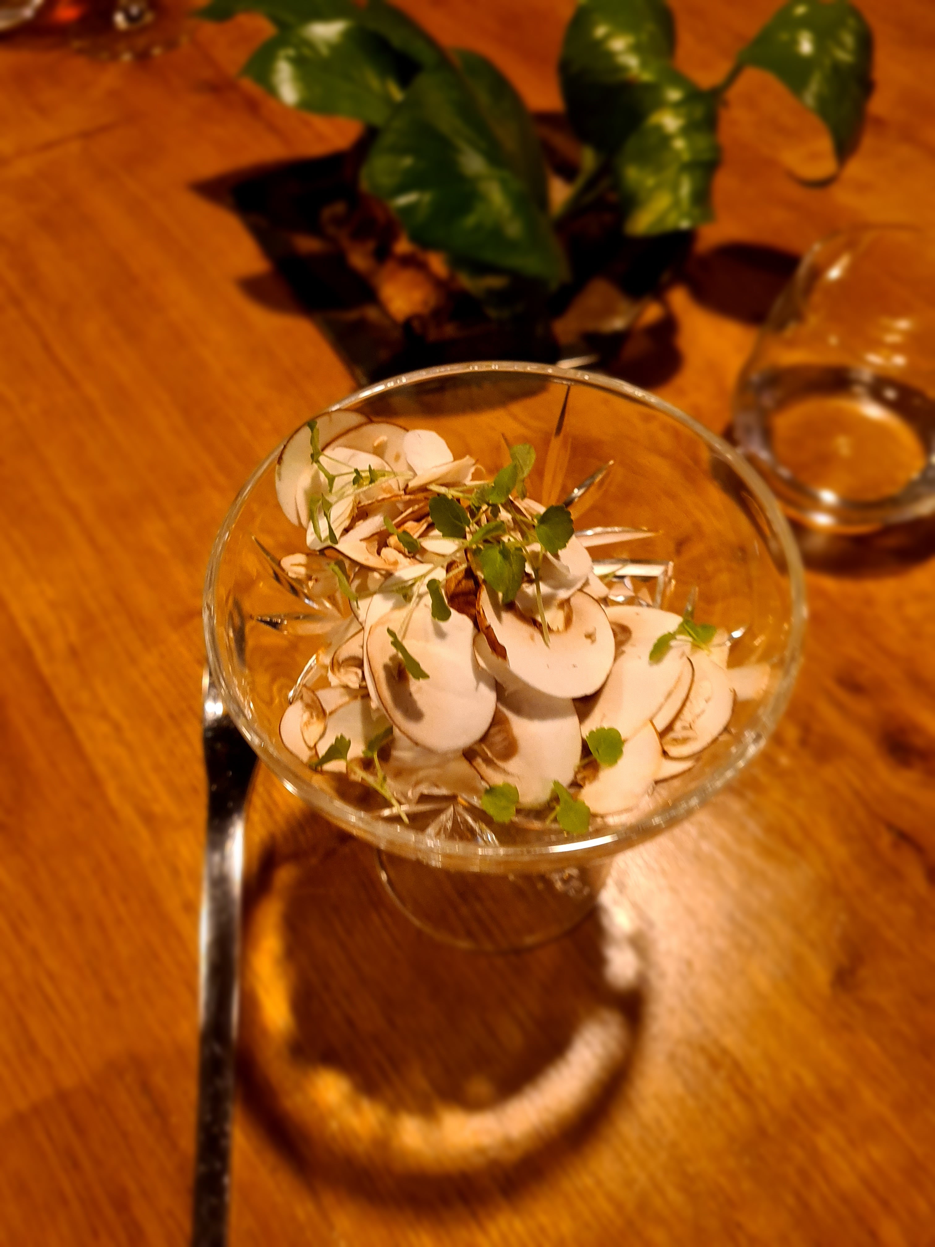 Magnifique, délicat et délicieux. Un dessert aux champignons fantastique, une petite bougie pour mon anniversaire, des saveurs fraîches et gourmandes…c’était parfait!