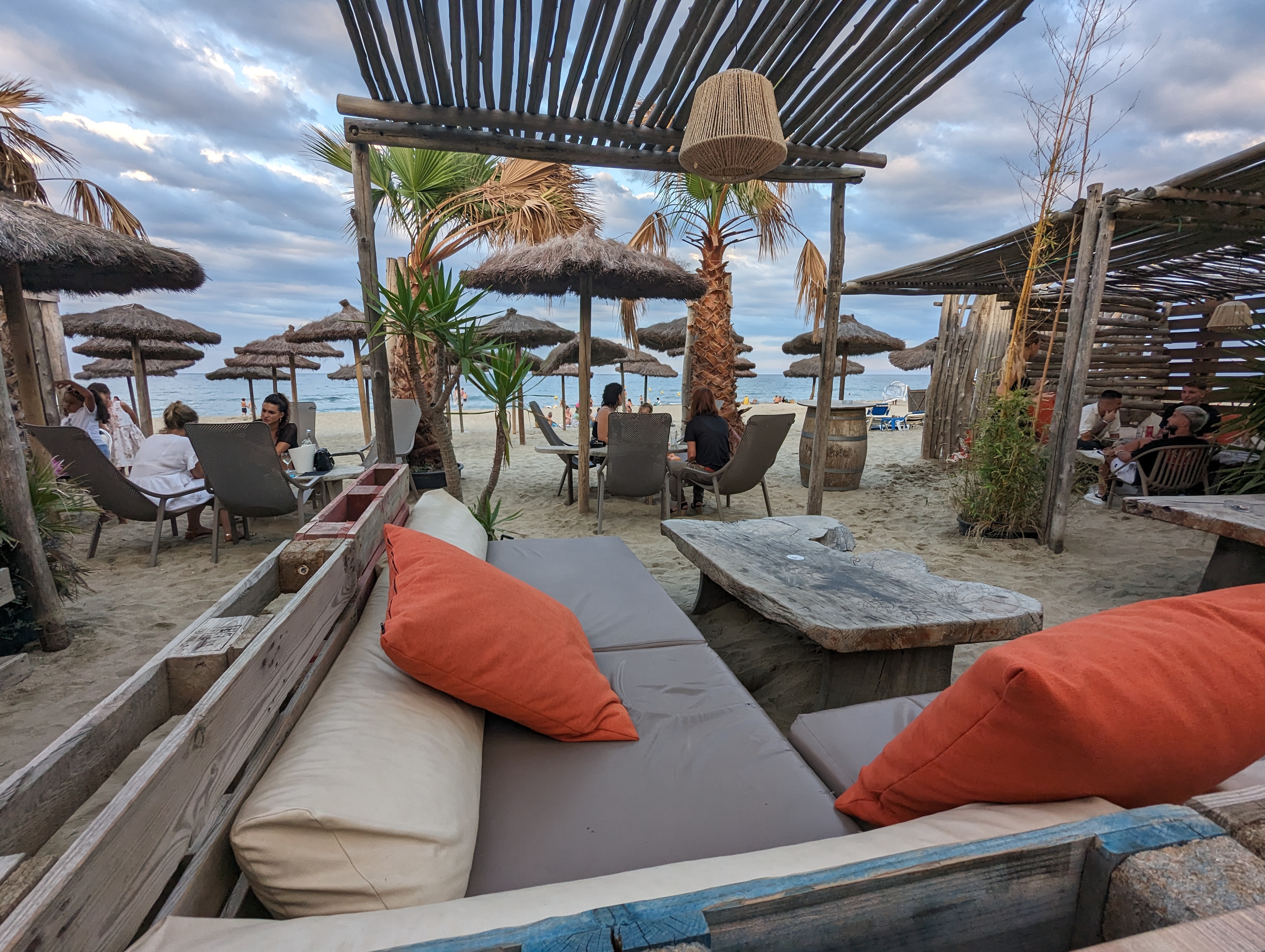 Un des restaurants de plage les mieux décorés du Canet; continuité entre la zone les pieds dans le sable et la zone couverte autour du bar. Accueil agréable. On est arrivés tard pour déjeuner et on nous a proposés des assortiments de tapas et de desserts très appétissants. Service sympathique et discret. On a pu passer un bon moment à se détendre.