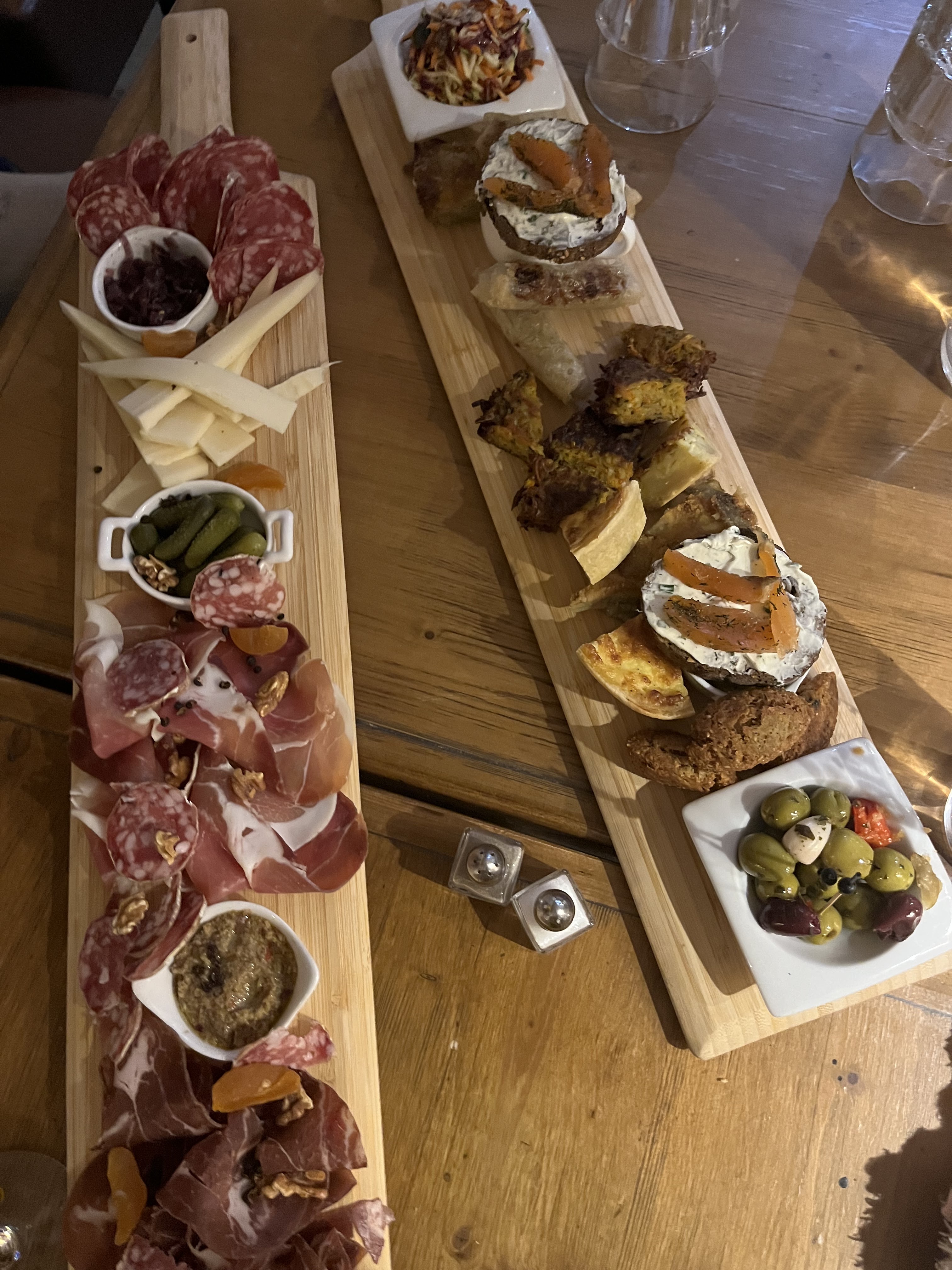 Nous avons passé un excellent dîner ce soir : tapas et paella. Nadege la chef vient d'ouvrir il y a deux semaines. Elle est passionnée par le partage de sa cuisine. A essayer à Arc 1600.