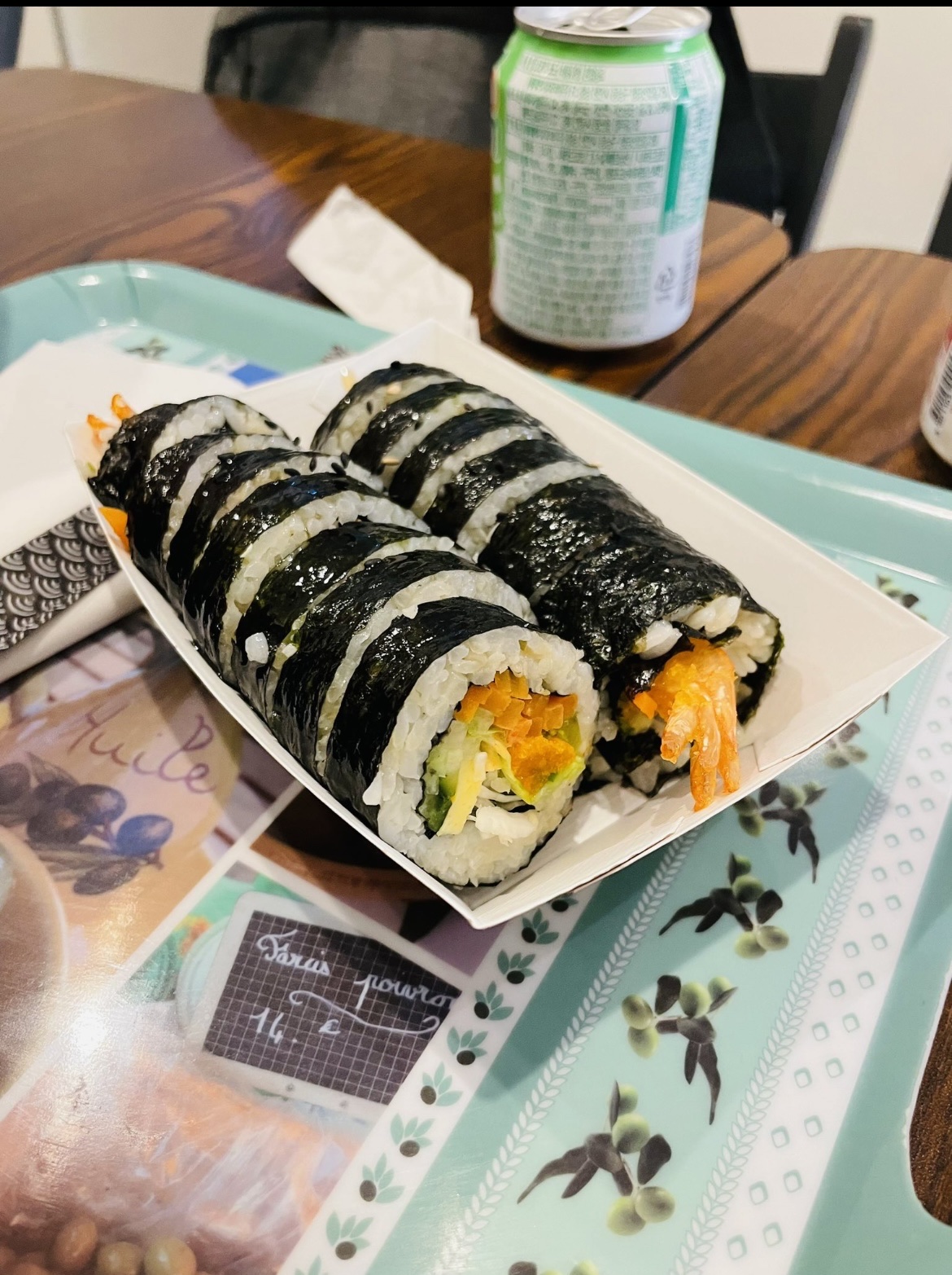 Le kimbap a le goût de la cuisine de maman en Corée !! C'est encore plus délicieux car il est enroulé juste après la commande. C'est la meilleure cuisine coréenne que j'ai jamais mangée après un long voyage. ^^