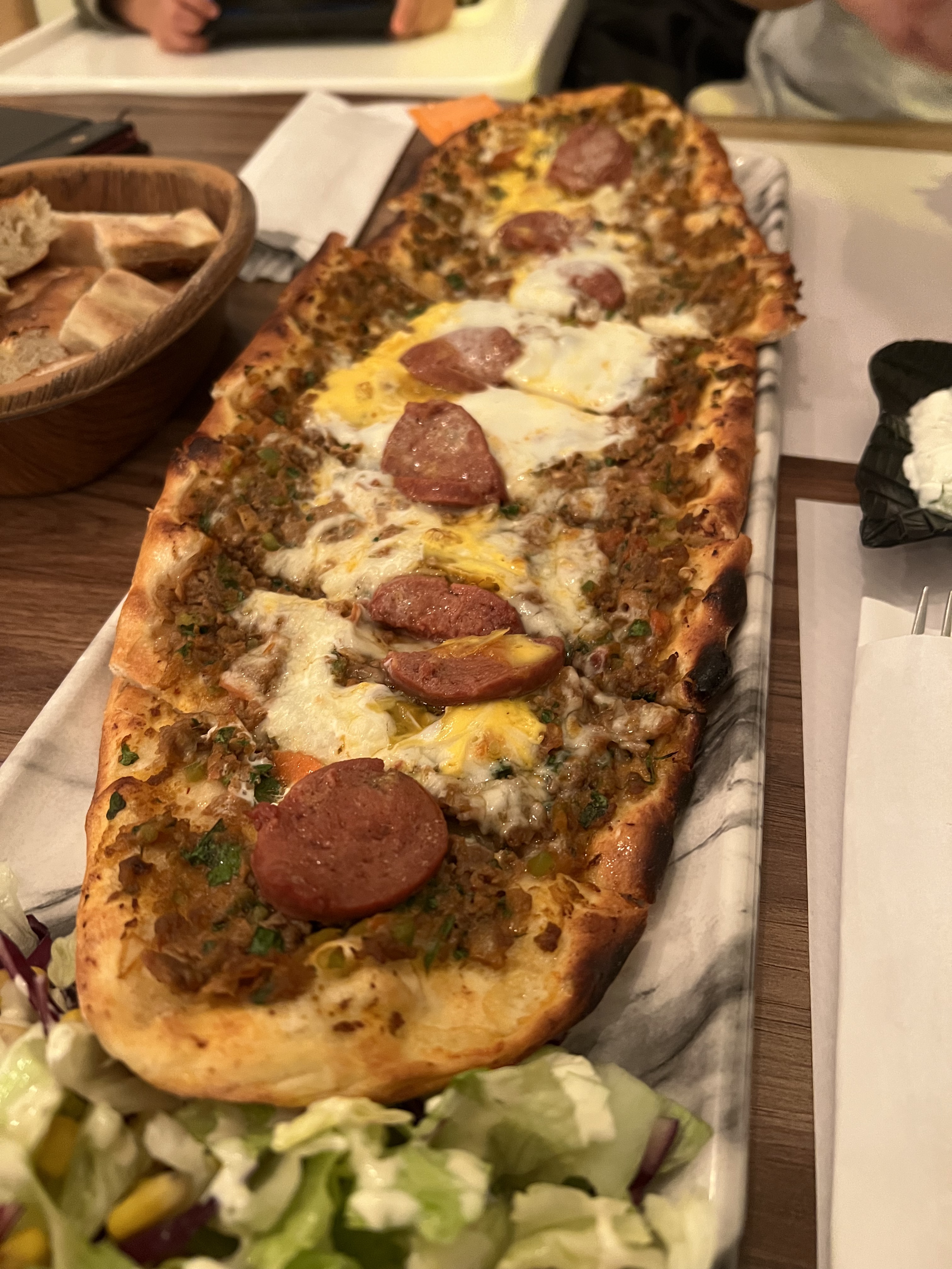 Il y a longtemps que je chercher un restaurant avec de vrais plats turcs . J’y suis allé avec un amis , nous avons prix des côtelettes d’agneaux grillées , que dire …. Un pur délice , viande super tendre avec du goût . Ensuite les « Pide » , les sortes de longues pizza turc , j’ai choisis la n20 , mozza, œuf, chorizo… à la même hauteur que le plat précédent . Avec ça nous avons eu du pain turc accompagnés de 3 petites assiettes où j’ai pu apercevoir dans l’une d’entre elle un mélange avec des haricots rouges , dans les autres je ne saurais vous dire ce qu’il y avait , mais c’était excellent ! Au passage la serveuse était super gentille et serviable et l’équipe pareil . Excellent restaurant . Je valide très très fort !