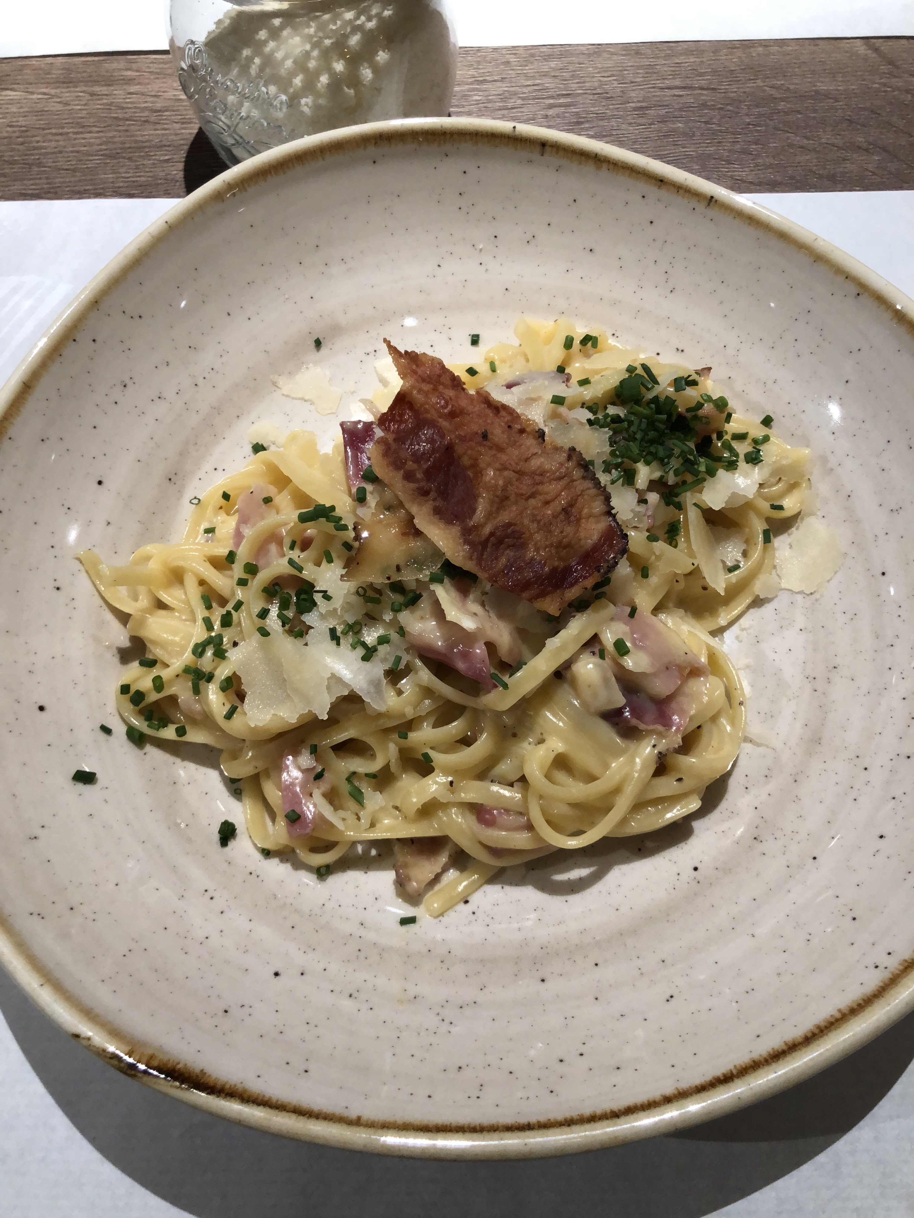 Attention on est sur du lourd là. Je commande un plat et dessert. Plat: linguine carbonara. La vraie ! Pecorino, guanciale...Pas de crème ou autre chose.... les pâte les plus succulentes que j'ai mangé jusqu'à présent. Dessert : tiramisù. Il a rempli son rôle, il m'a tiré vers le haut. Merci.