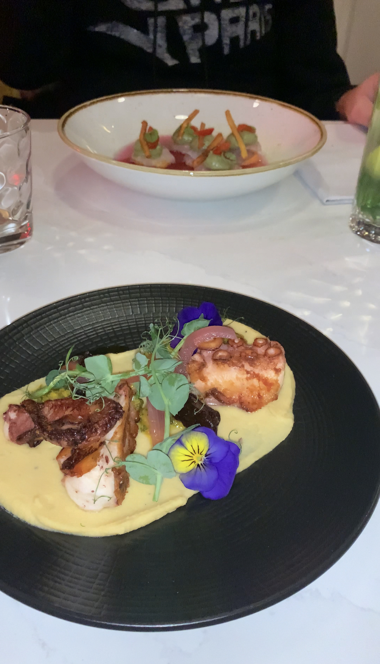 Belle découverte, on a très bien bien mangé. Le serveur était gentil, le cadre agréable. J’ai adoré le petit show pour l’entrée le ceviche oú la sauce change de couleur, elle passe du bleu au rose. Le poulpe était très bon aussi. Mention spéciale pour les ravioles au pleurotes qui étaient super bonnes. Et pour finir leur fameux dessert la ganache au chocolat qui est très bien présentée.