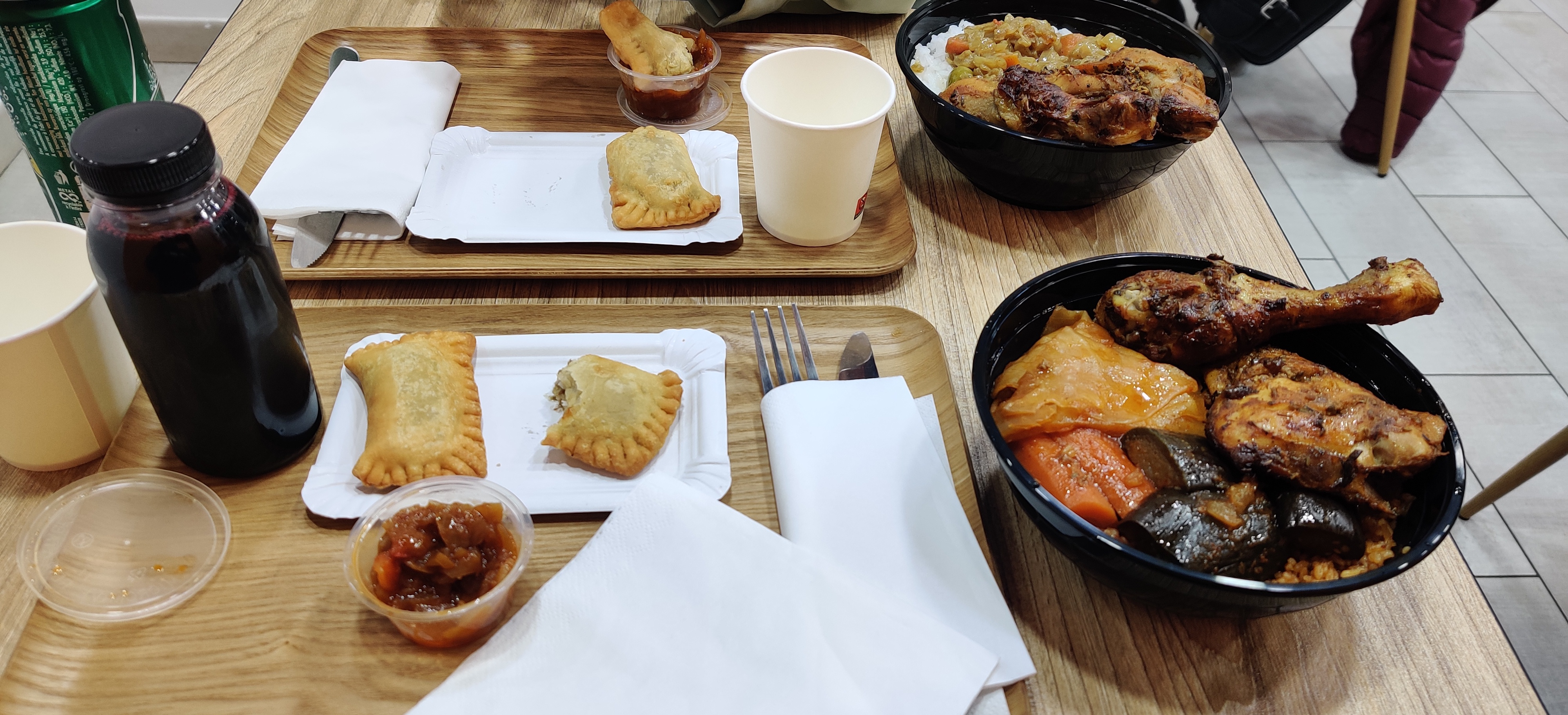 Depuis le temps que je passais devant sans avoir le temps de m'arrêter... C'est donc chose faite. A peine entrée le patron sait que je suis une nouvelle cliente et il me le dit c'est la première fois que vous venez... Top ! L'accueil Gambien typique... Happy family, no problem in The Gambia 😉 Pour le reste... On a testé la box à pastels ( trop bon. Je recommande), le mafe bœuf et poulet et le yassa.... Soirée parfaite entre ça, la victoire du Maroc puis celle de la France et le Sénégal en cuisine !!! Allez-y !!!