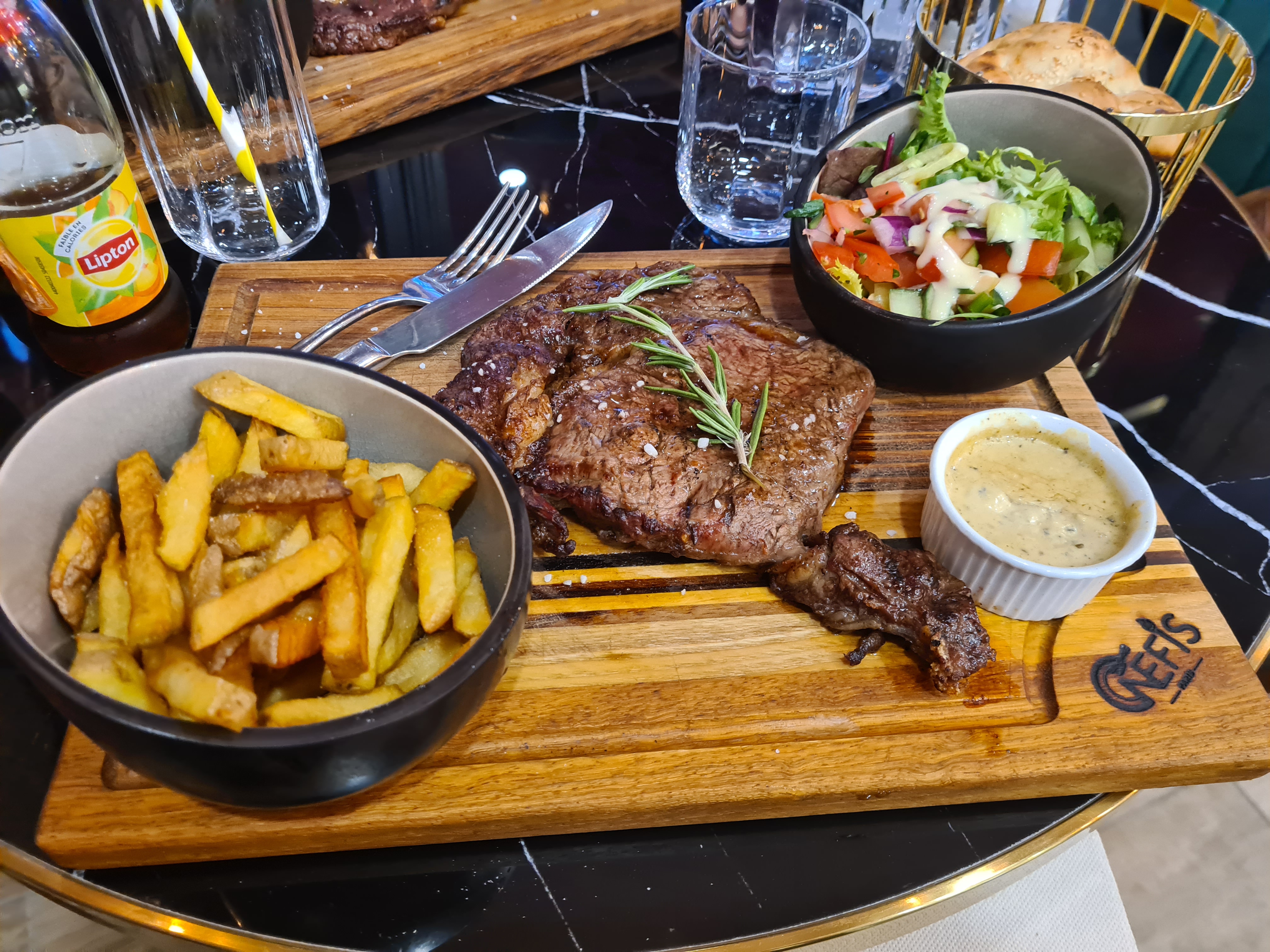 Bel accueil, service agréable et réactif, le client est choyé. Le cadre est également très jolie. Par contre la nourriture est très commune et manque cruellement de saveur (pain caoutchouteux, ayrane trop salé, viande neutre…) du niveau d’un kebab standard. C’est dommage par rapport au standing attendu lorsqu’on se rend dans ce genre d’établissement.