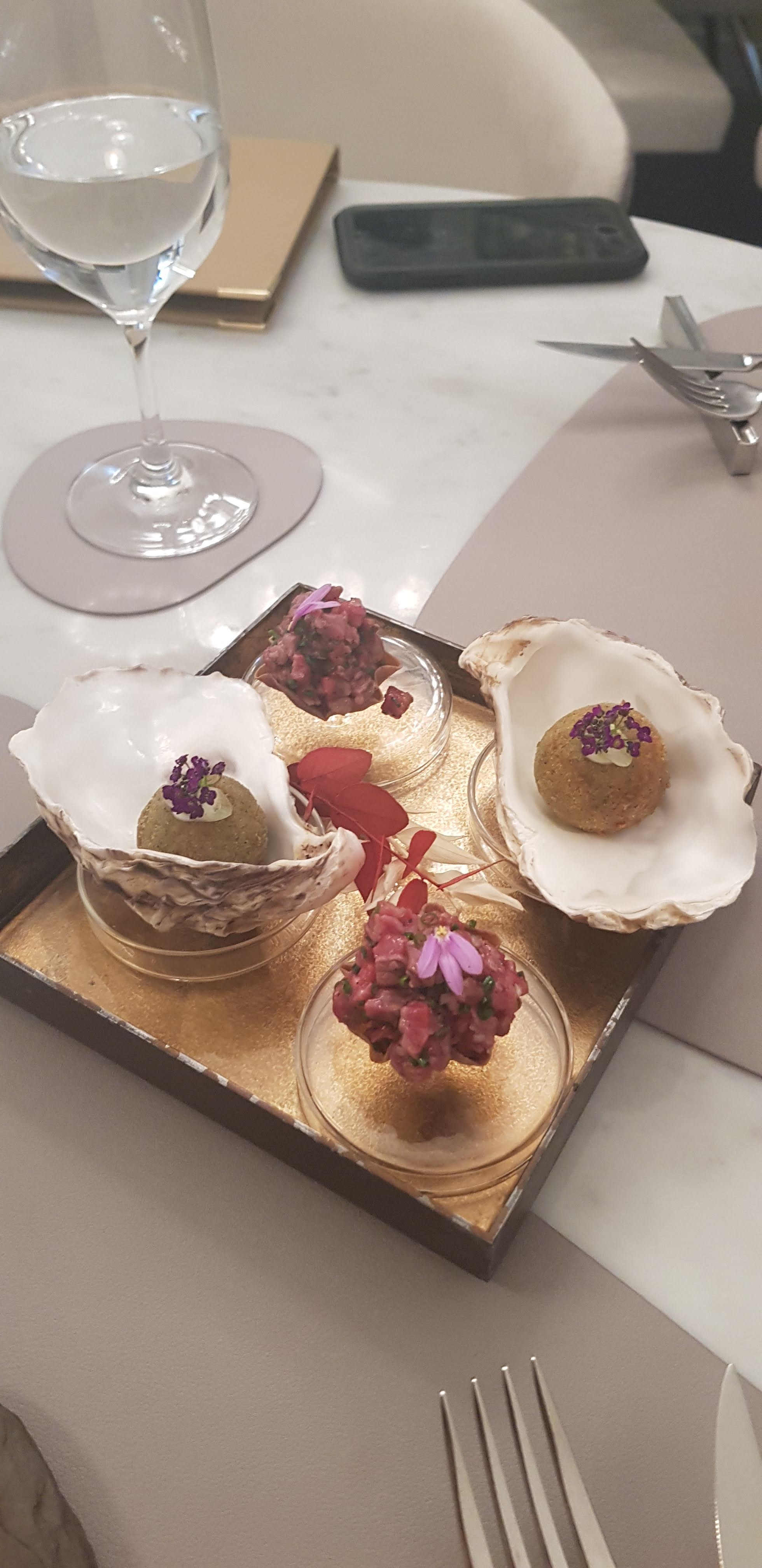 Excellente expérience avec de très bons produits parfaitement cuisinés. Des saveurs originales. Seuls bémols, l'utilisation de caviar dans la sauce des Saint Jacques et avec le boeuf waygu qui n'apporte rien à la saveur des mets. Le prix des vins est un peu élevé. Service impeccable.