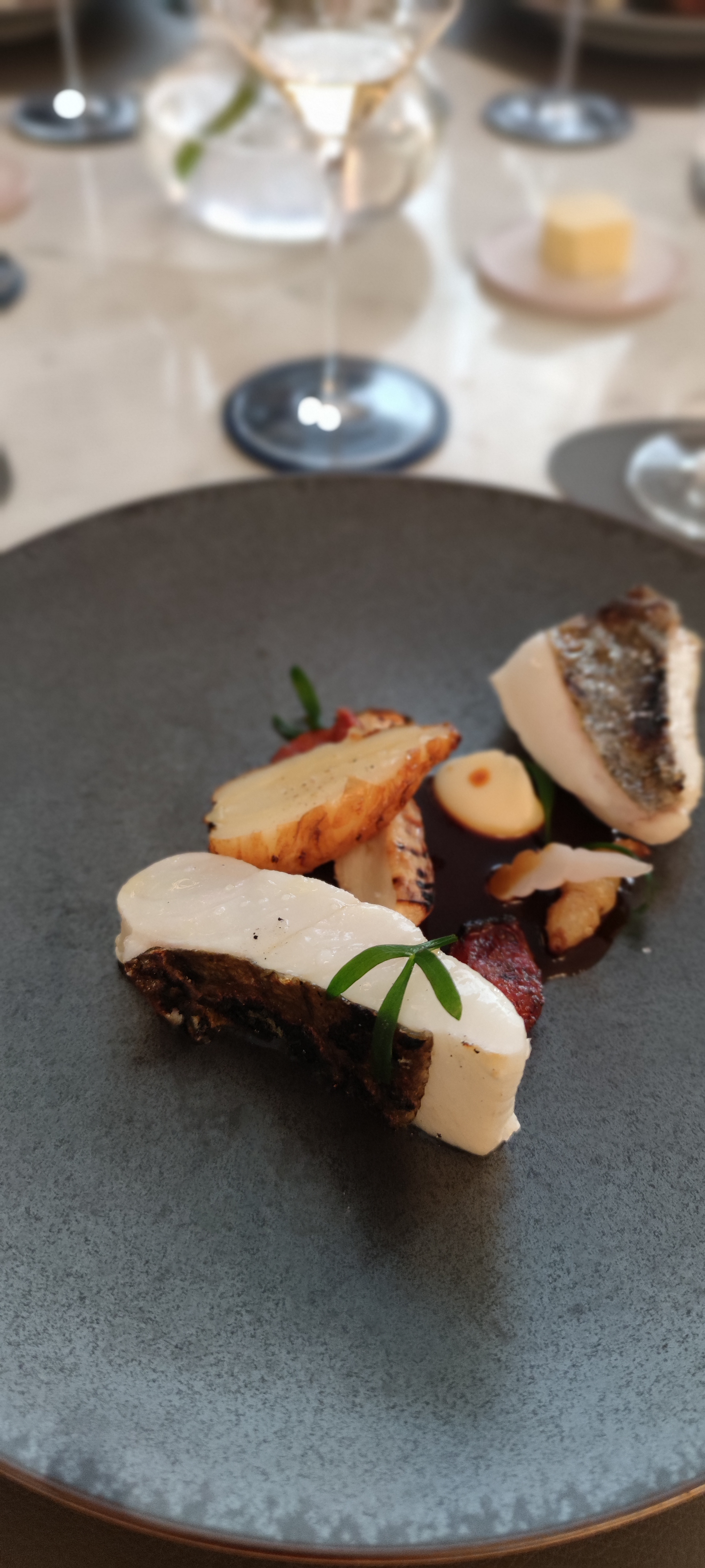 Cuisine créative autour du poisson surtout. Nombreux amuse bouche et mignardises savoureux. Un spectacle dans l'assiette. Service qui peut encore se mettre à la hauteur de la cuisine. Par moments trop présent ( vers te remplis à chaque gorgée), par autres moments absent (nous avons attendu 30 minutes un convive et seulement à son arrivé on s'est vu proposer un apéritif) . Mais malgré ces remarques, par ailleurs service tout à fait sympathique. Vins très chers. Une excellente soirée.