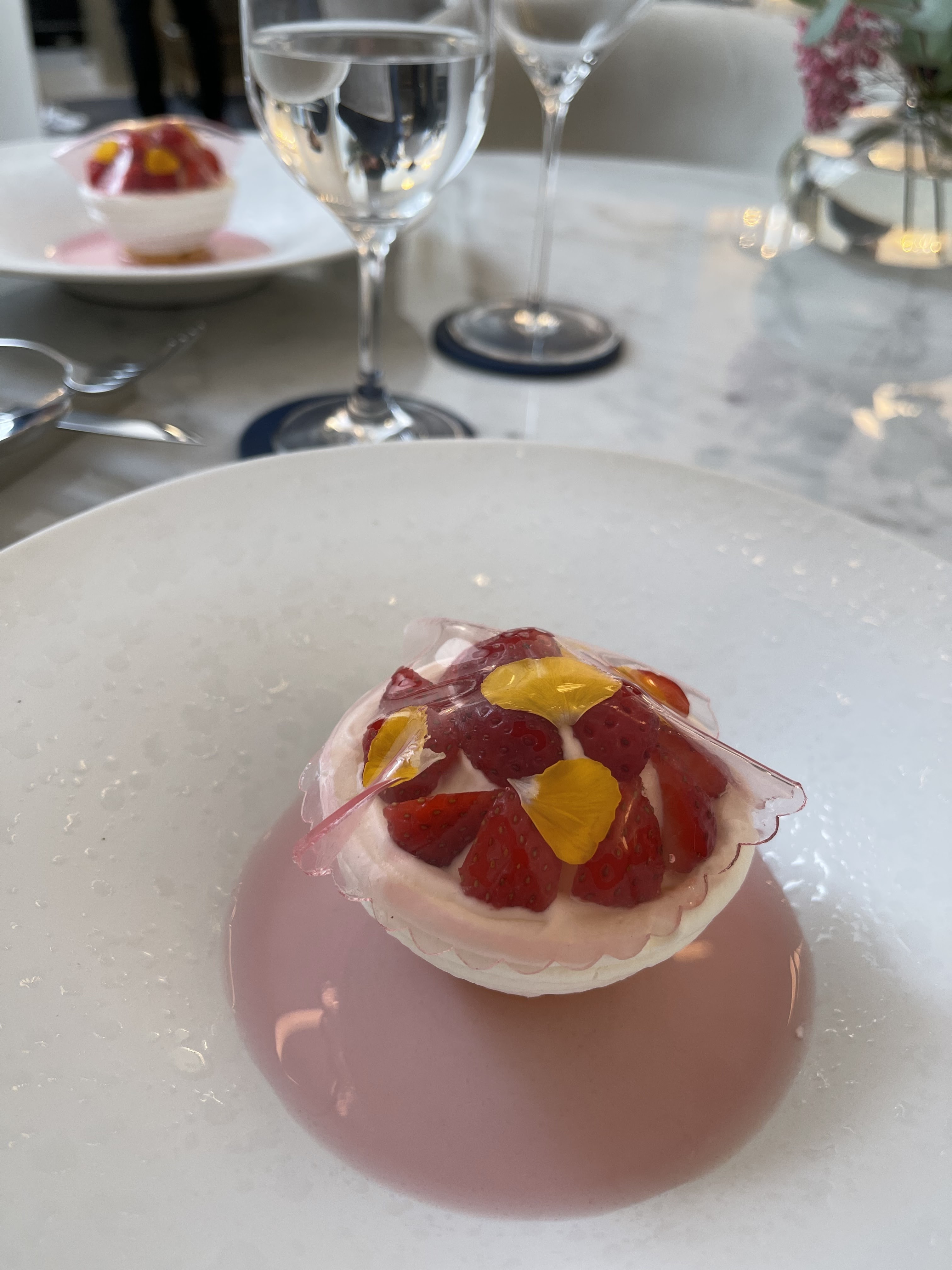 Sincèrement les plats sont très bons et le service impécable, par contre les prix sont tout de même très élevés ce qui impact tout de même le ressenti global car sincèrement on manges bien à Paris sans avoir à payer autant donc je penses qu'il faut garder les pieds sur terre de temps à autres. C'est bon mais trop cher, tout simplement.