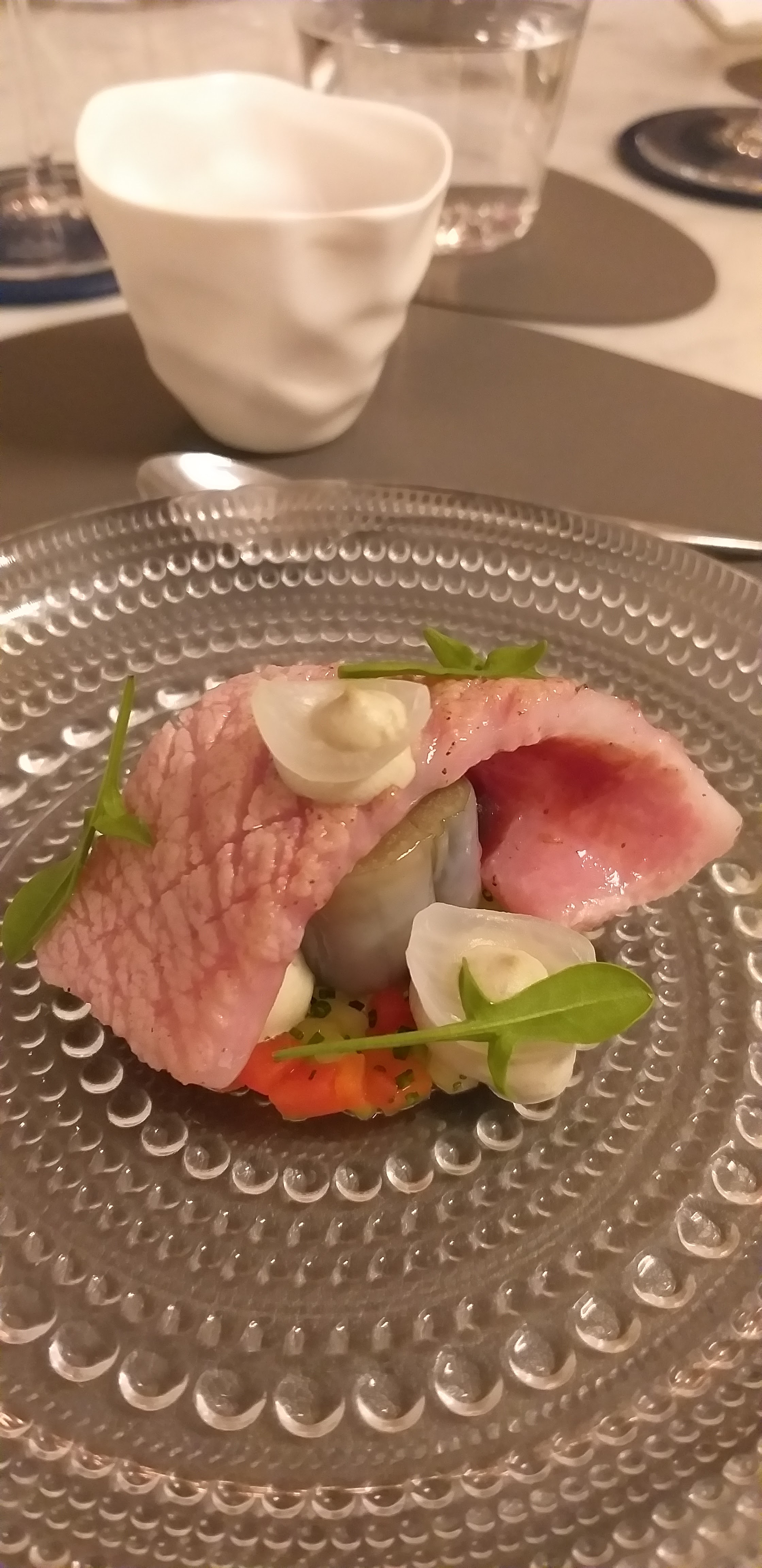 Un très bon repas, un champagne délicieux, des touches japonaises subtiles mais agréables. Seul bémol le plat à base de tomates de plusieurs couleurs qui était très moyen. Le Saint-pierre était en revanche incroyable.