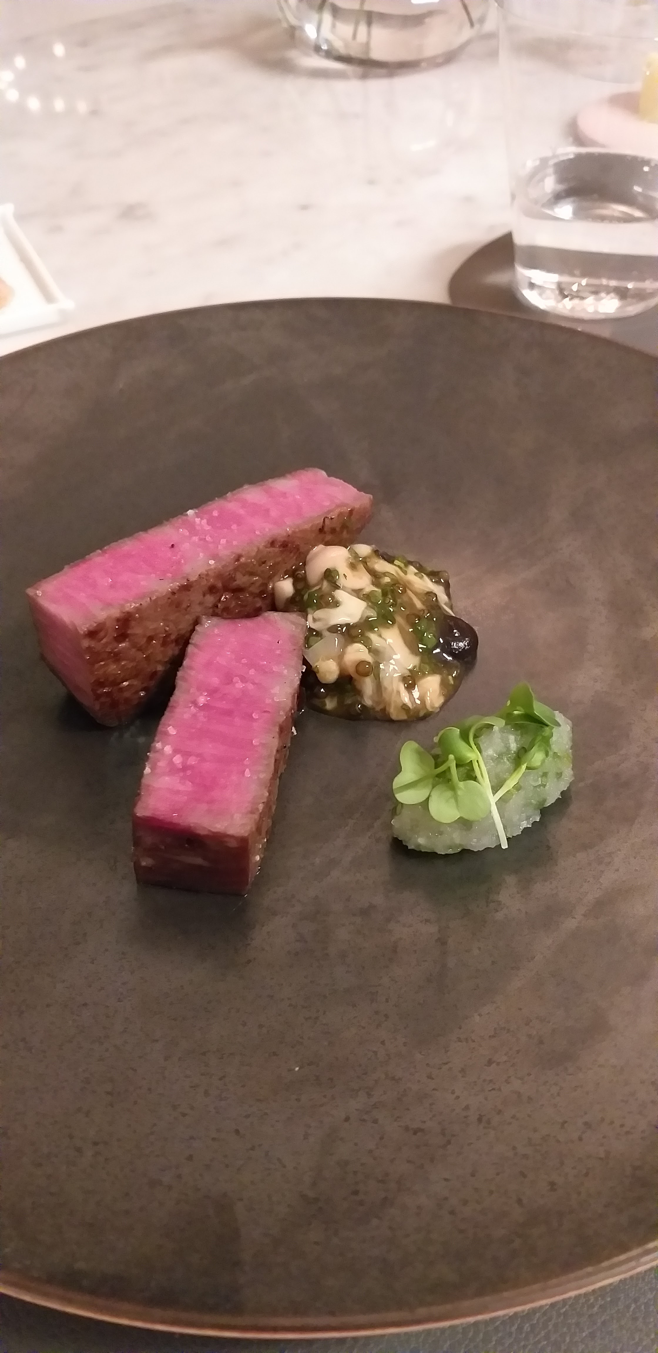 Expérience culinaire unique dans ce temple du raffinement. Tout est volupté : plats, services. Ambiance. Peu de tables suffisamment espacées. Dégustation en 5 ou 6 plats dont le fameux bœuf japonais. Tout est délicieux.