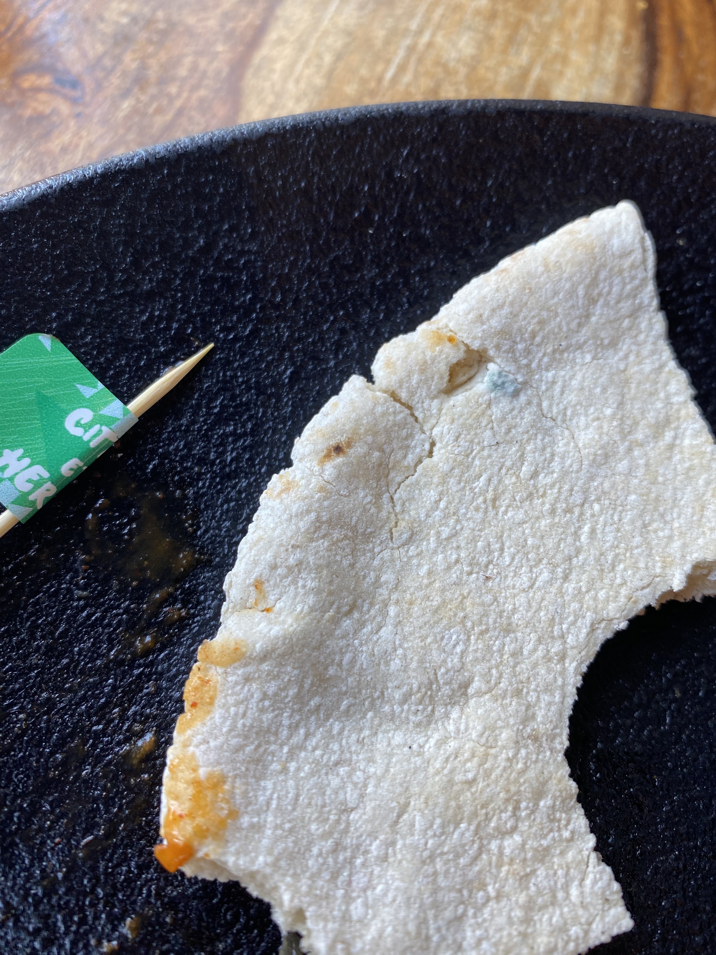 Le poulet est bon pas loin de celui qu’on fait à la maison rien d’exceptionnel. Le seul truc impressionnant à mon avis pour les clients c’est que ça arrive sur des broches, bon passons. Les frites c’est du surgelé, la mayonnaise elle a aucun goût/granuleuse et il manque la moitié de la carte quand tu arrives. Et en plus on te fait comprendre qu’il faut partir dès que ça approche 14h, en te débarrassant quand tu as pas fini (on m’a enlevé les couverts j’avais même pas fini mon plat …) et donc en plus même pas la possibilité de prendre un dessert. La serveuse en caisse est en aucun cas chaleureuse et le climat était très étrange, très froid, enfin aucune aptitude pour le service client. Tu vas dans ce restaurant et c’est toi qui doit te lever pour aller commander ton plat et surtout tu payes tout de suite avant de déguster je m’attendais à un restaurant pas à une réplique de kfc. Bref et cerise sur le gâteau, le pain pitta était pourrie avec des taches bleus de moisissures… (photo a l’appuie) Aucune excuse, compliqué de nous rembourser, ou de faire un geste commercial, enfin si elle m’a remboursé les 60 centimes du pain pitta, mais quel acte généreux pour un repas qui aurait pu nous envoyer aux urgences… Bref bon appétit aux prochains testeurs, on passe notre tour. C’était ce midi du 12/07