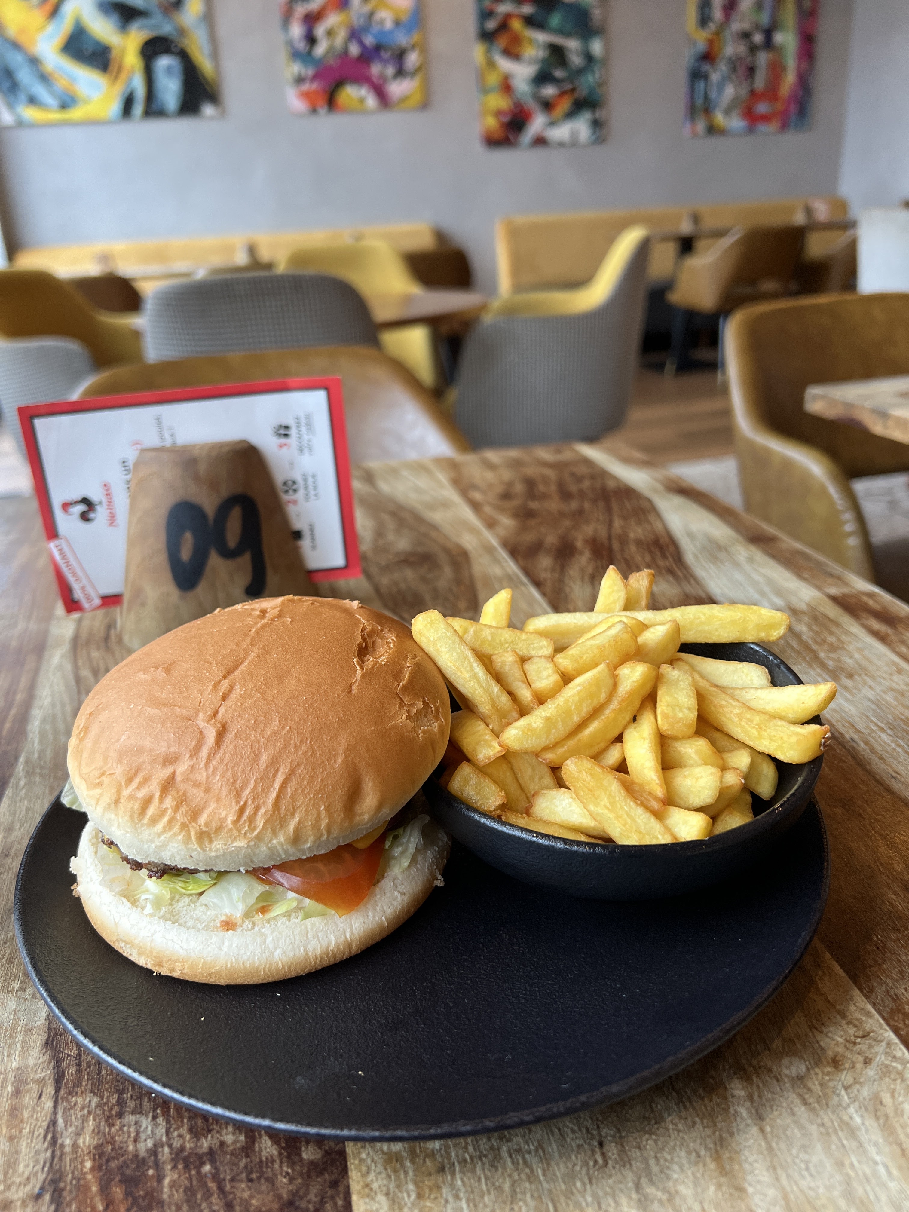 Burger très bon ! Dommage qu’il n’y ai pas de sauce pour accompagner les frites.