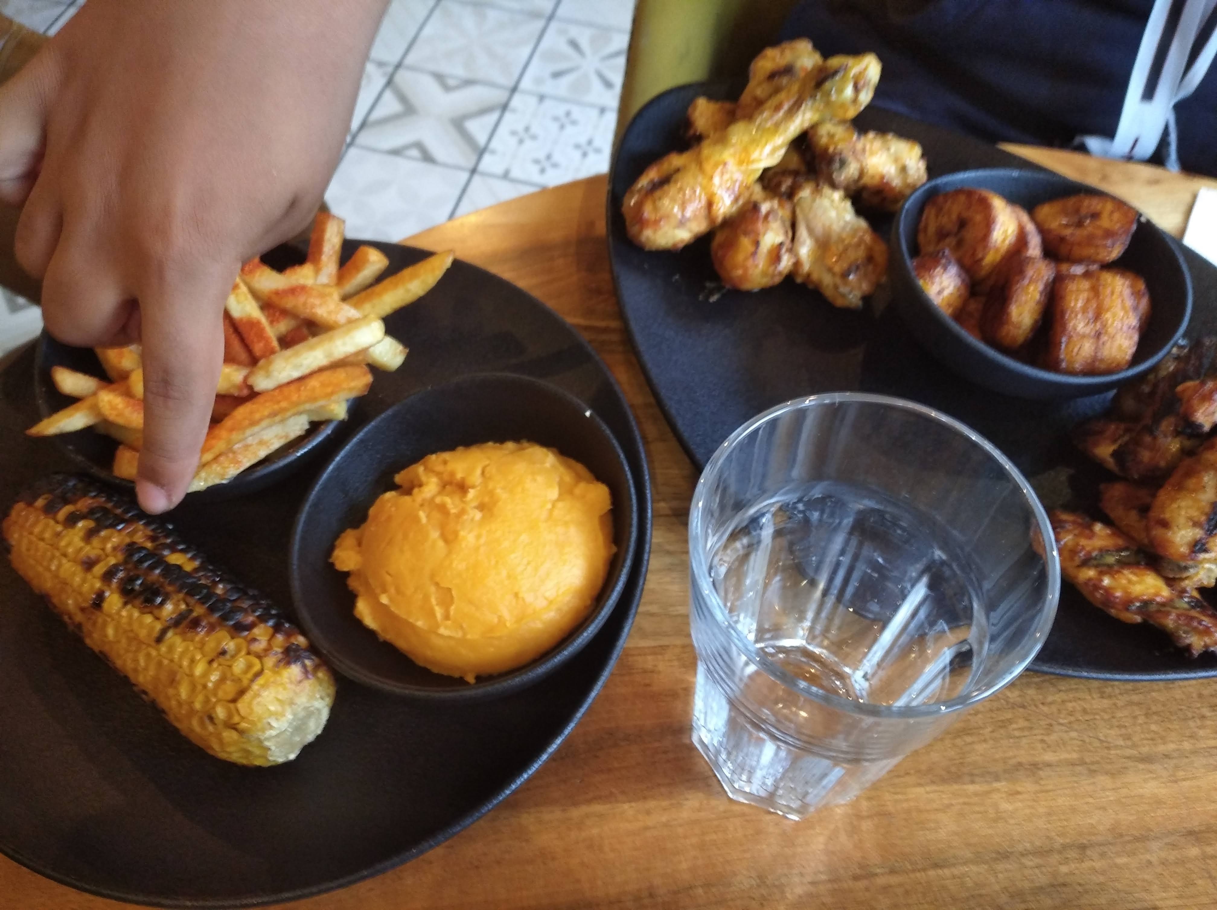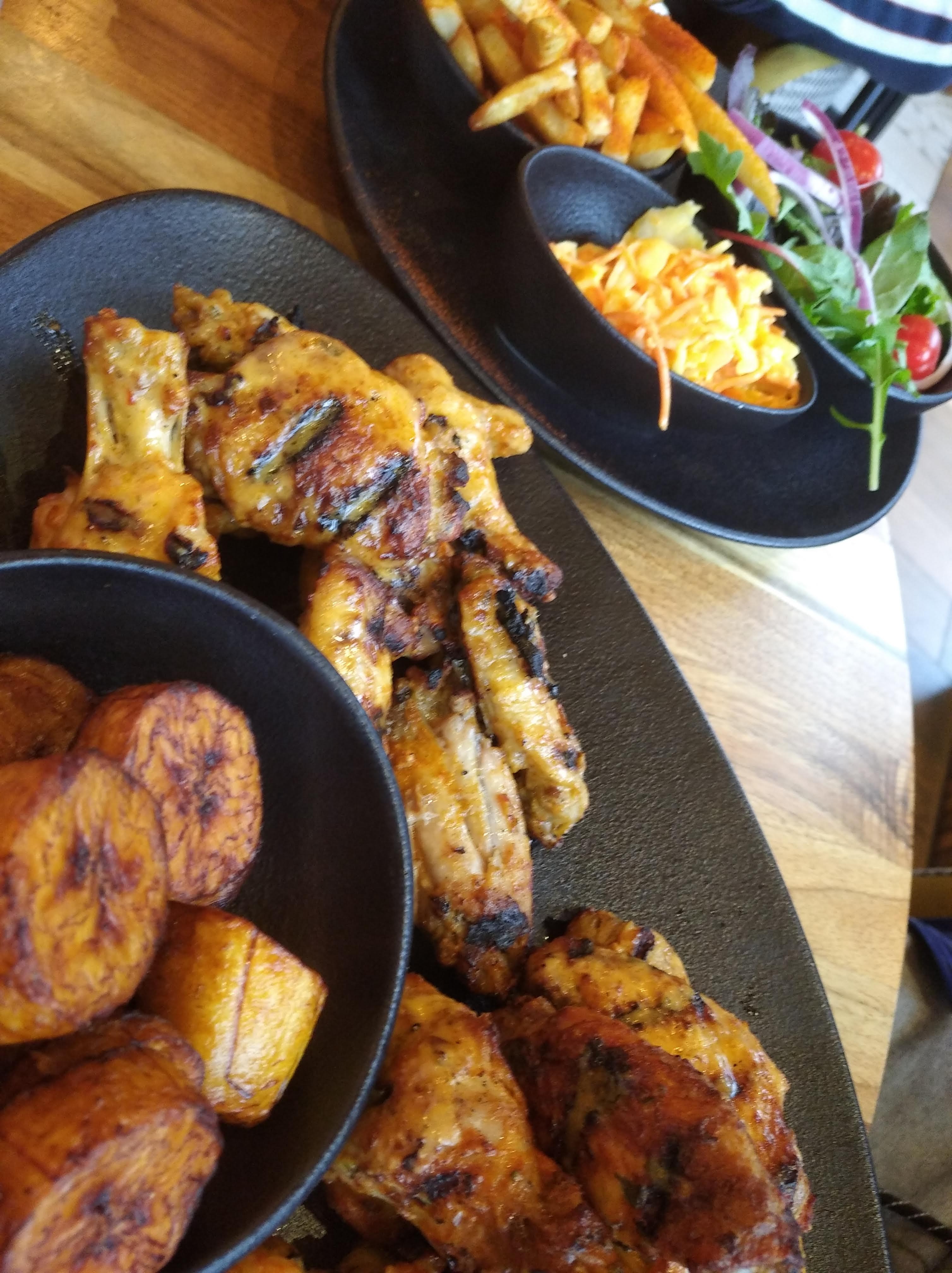 Bon endroit pour manger, ambiance, déco et musiques très agréables ! Endroit propre, les serveurs sont très gentils ! Belle cuisson du poulet, bon choix des sauces (plus ou moins épicées selon les goûts). Grand choix d’accompagnements (une bonne dizaine), le coleslaw est correct, les bananes plantains sont bonnes (même si la quantité est un peu juste). À tester :)