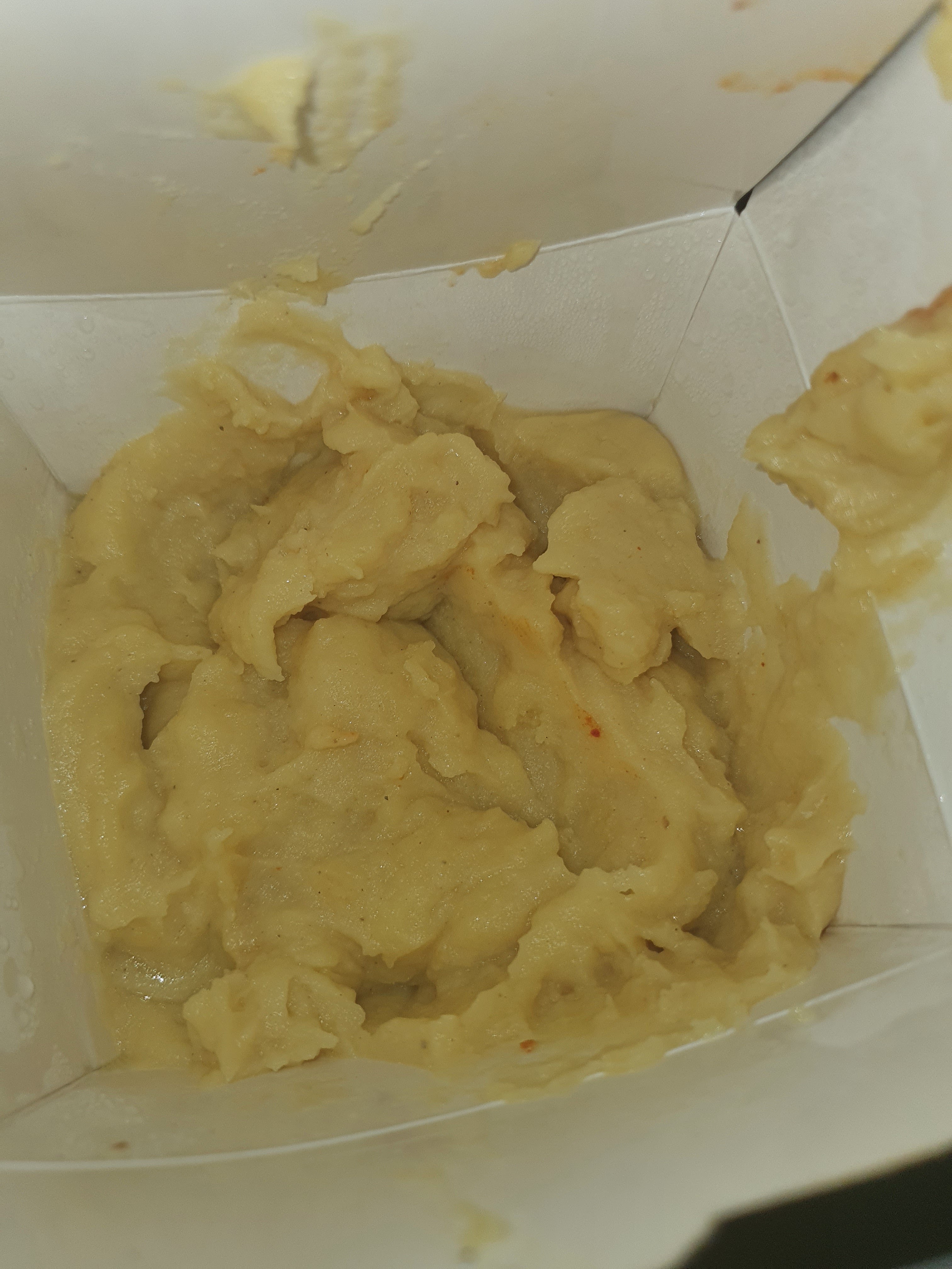Franchement la purée 🤢 je suis sur elle a tourné impossible de finir je vous est téléphoner pour vous demander si le goût, cette odeur de fromage amer était normal et si je si y'avais du fromage vous m'avez dit : c'est pas nous qui la fesont c'est un traiteur c'est peut-etre le beurre vous avez même pas pris le temps de gouter la purée que vous aviez sur place! J'ai pas manger la purée enfin quand meme 4, 5 cuillères 😪 impossible de finir donc faut vraiment qu'elle est tourner pour en arriver la ! Prions pour que je sois pas malade. ! Le maïs est pas ouff y'avais une odeur à des endroits et il donne pas l'impression d'être sortie du feu. Et le poulet les wings tres bon.