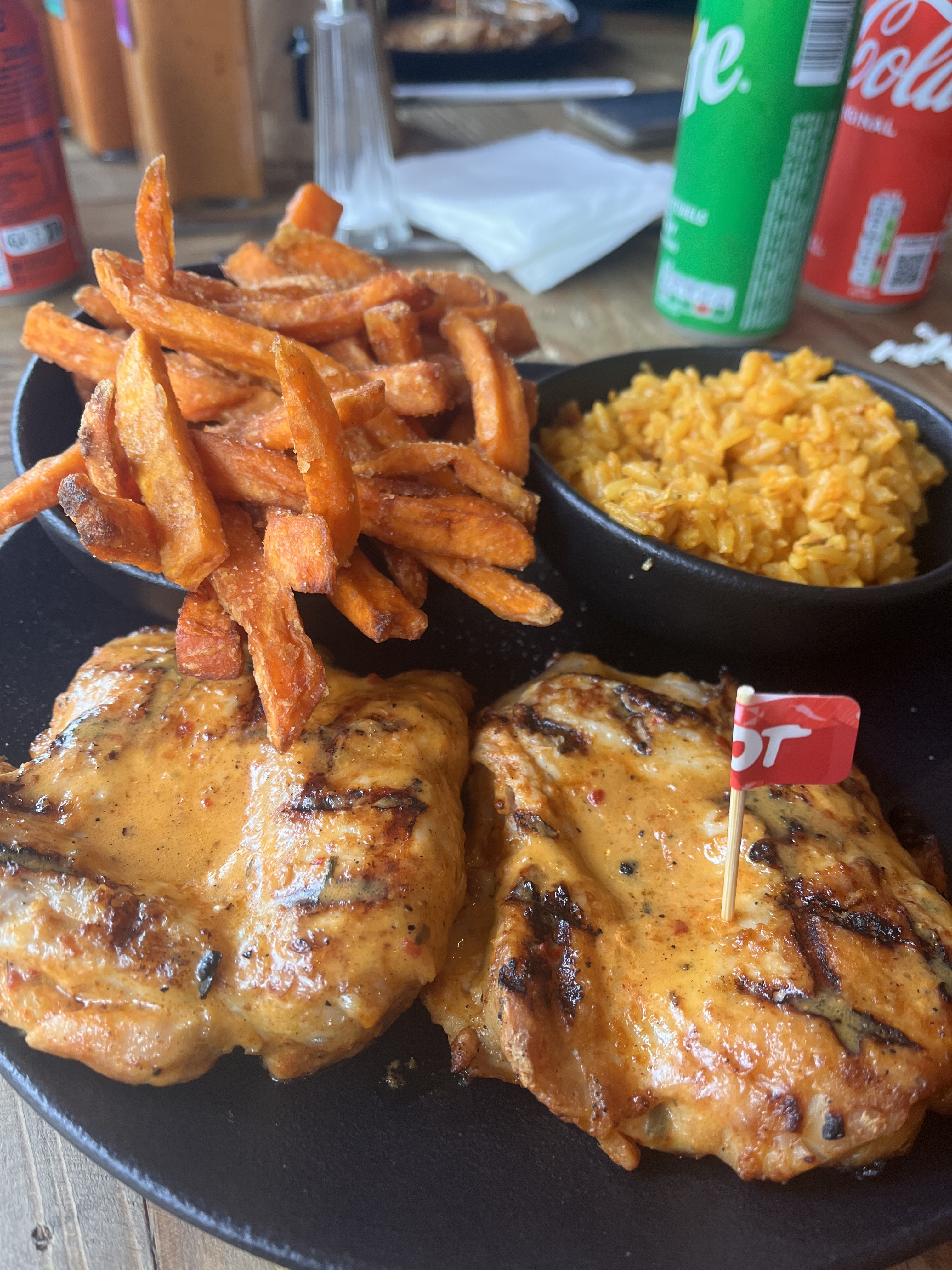 Restaurant spécialisé dans le poulet aromatisé à différentes sauces (bbq, la plus douce, à une sauce extra hot). Mix entre restauration rapide et restauration traditionnelle, on peut manger sur place ou à emporter et le service est relativement rapide. Pourvu que ça dure !!! 🤞