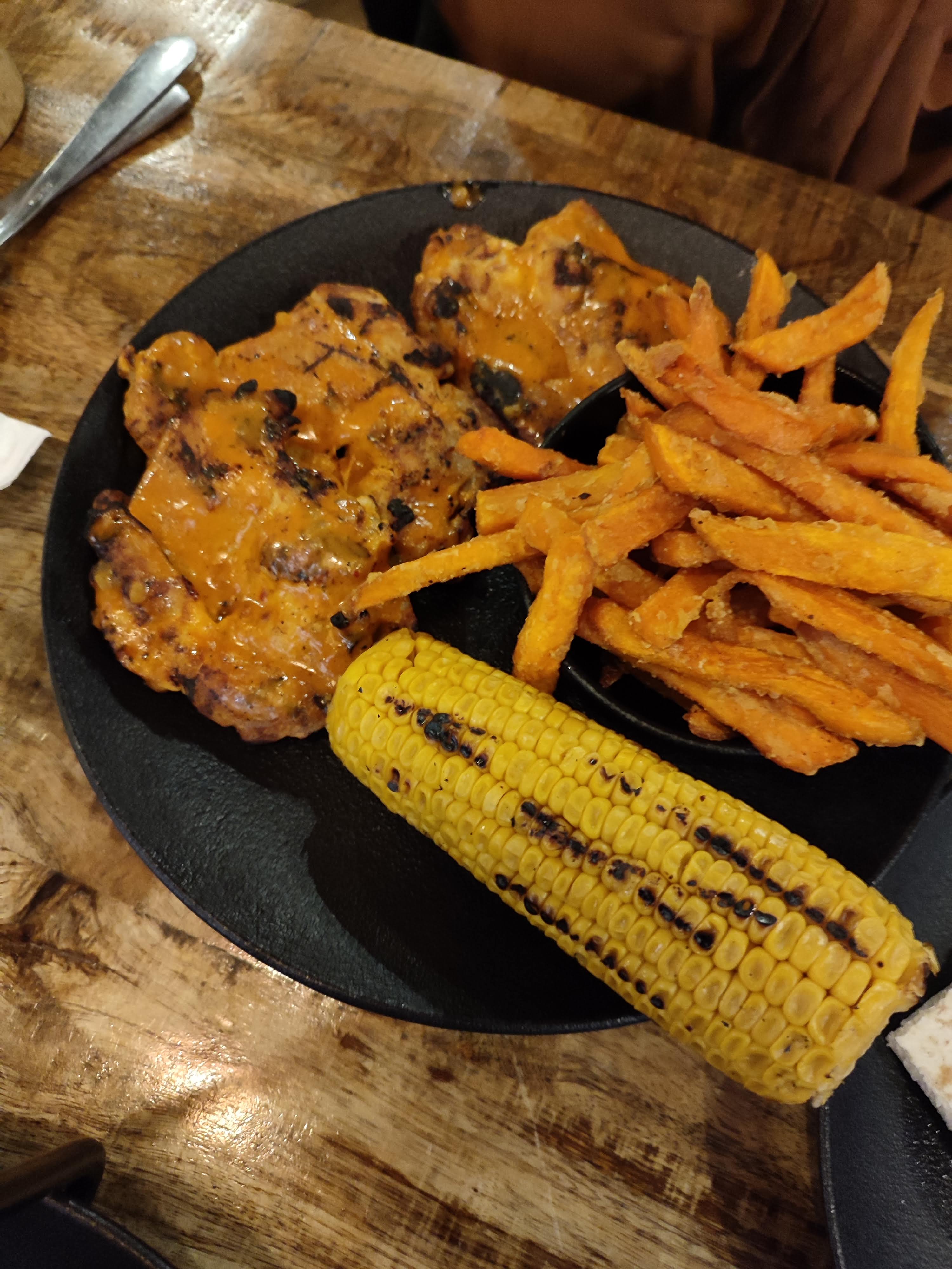 Viande assaisonnée bien généreusement, personnel souriant et impliqué, très jolie cadre, si vous aimez épicé et le poulet cet endroit et fait pour vous 🤩