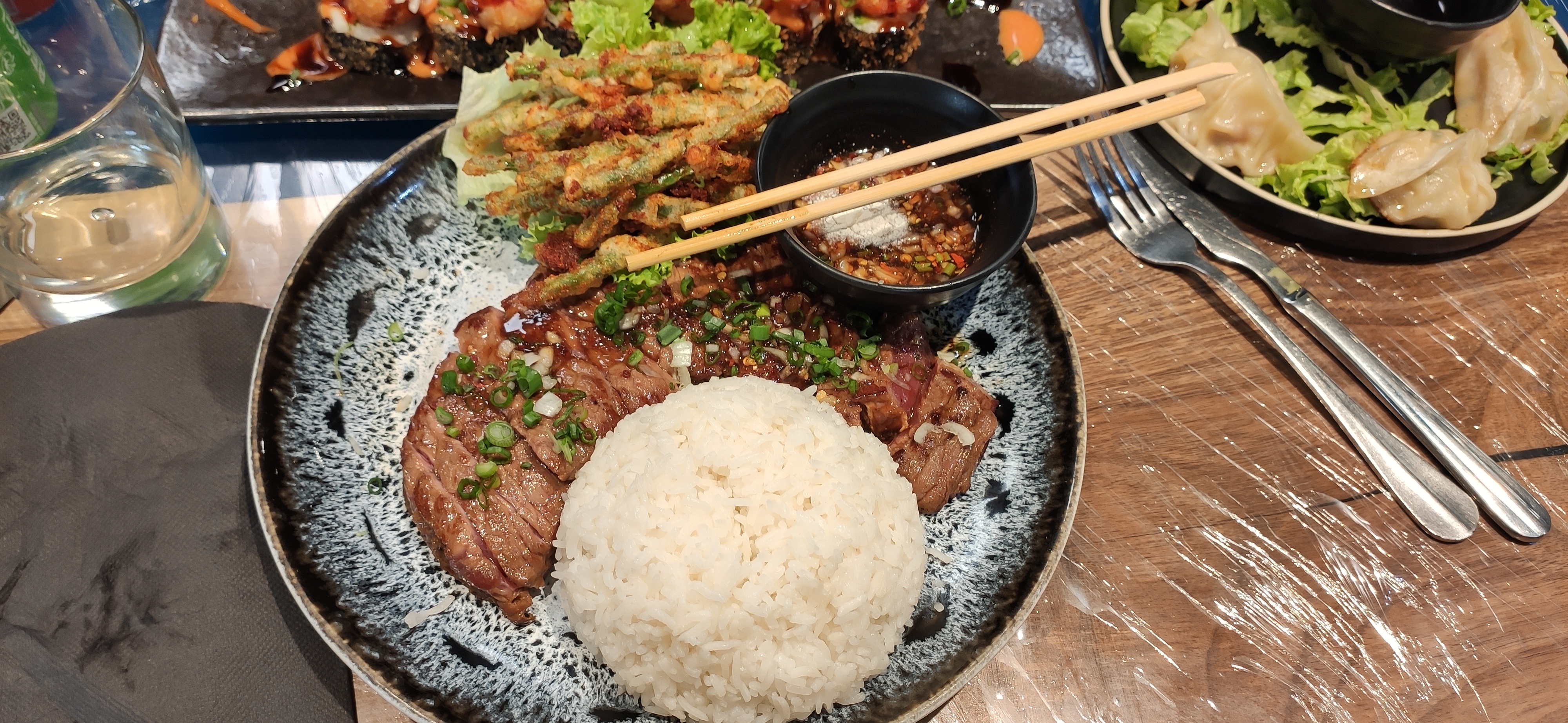 Positif : très bon ! Négatif : si vous voulez attendre 4h un plat vous etes la bienvenue, d’ailleurs je fais ce commentaire en attendant mes sushis. De plus, il n’y a pas de formule à volonté, ça chiffre vite ! Au moins le gérant nous a offert le dessert 🫡