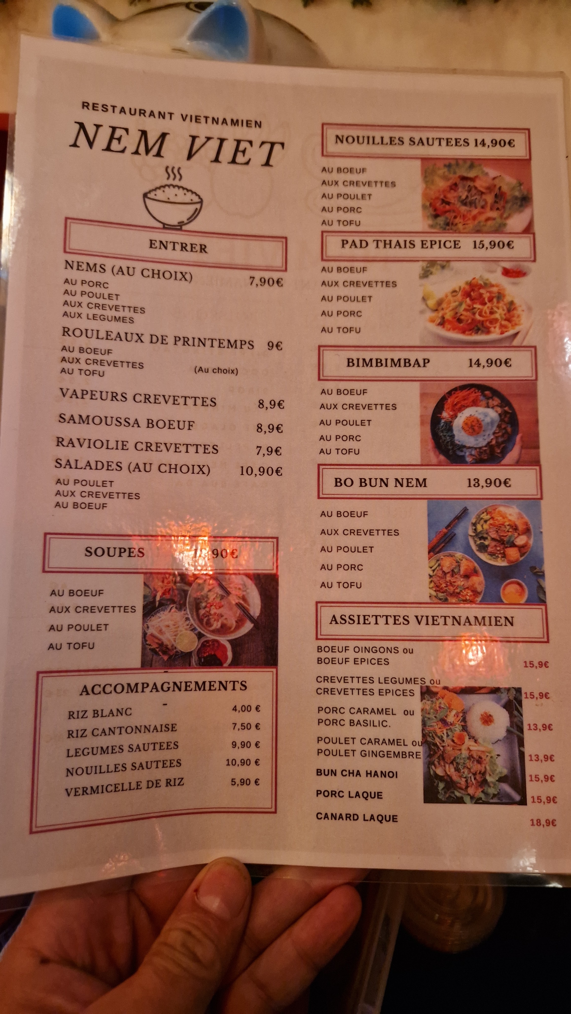 Nem crevette / soupe pho bœuf sont très bons! Un vrai restaurant vietnamien!