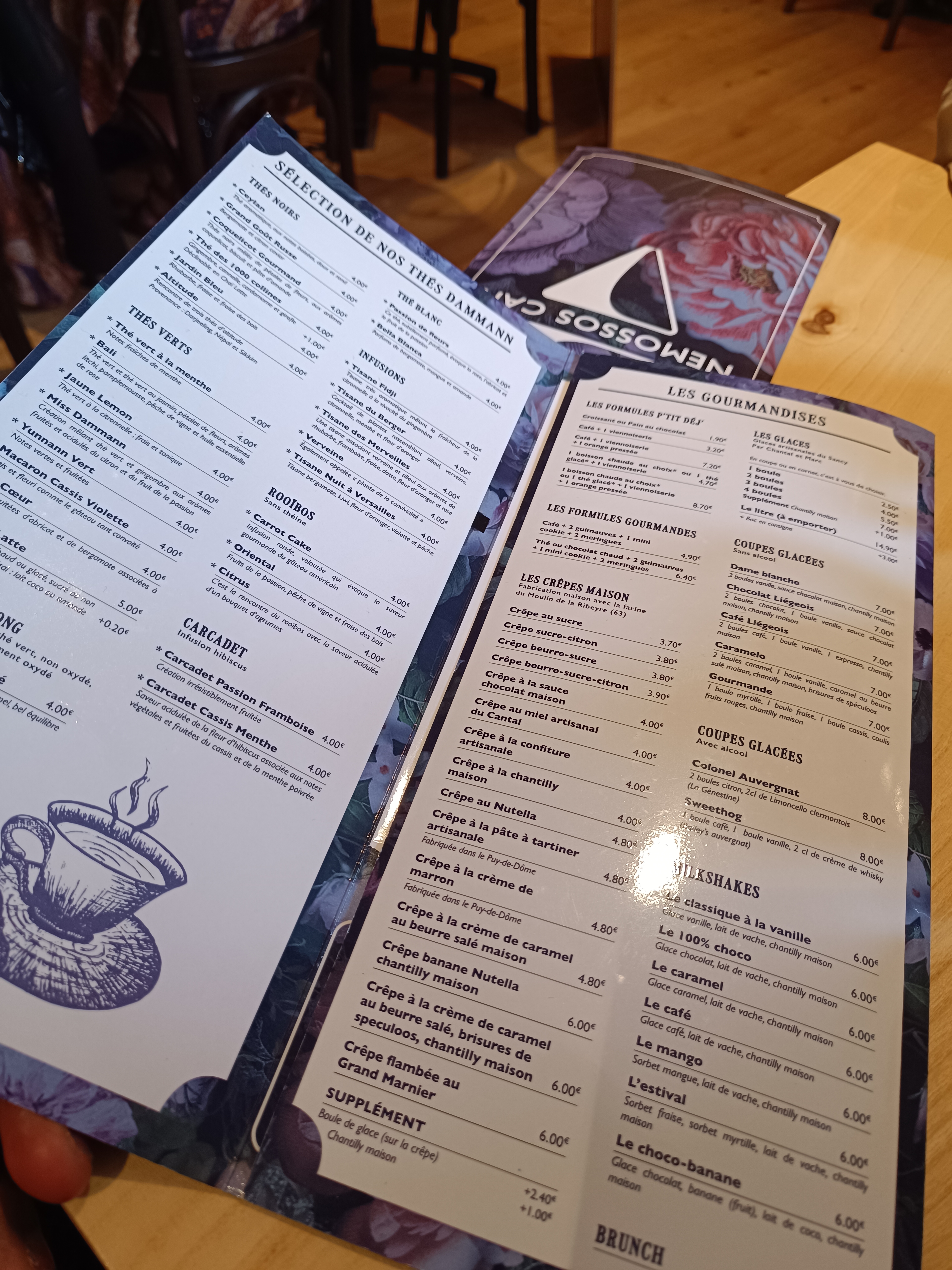 Le café et les crêpes étaient excellents et le personnel était très sympathique. Il y a une bonne ambiance et une jolie boutique de cadeaux où ils vendent toutes sortes de produits locaux (y compris leurs propres tasses faites sur mesure que nous avons beaucoup aimées). Ne passez pas à côté de cet endroit lorsque vous visitez la belle ville de Clermont-Ferrand !