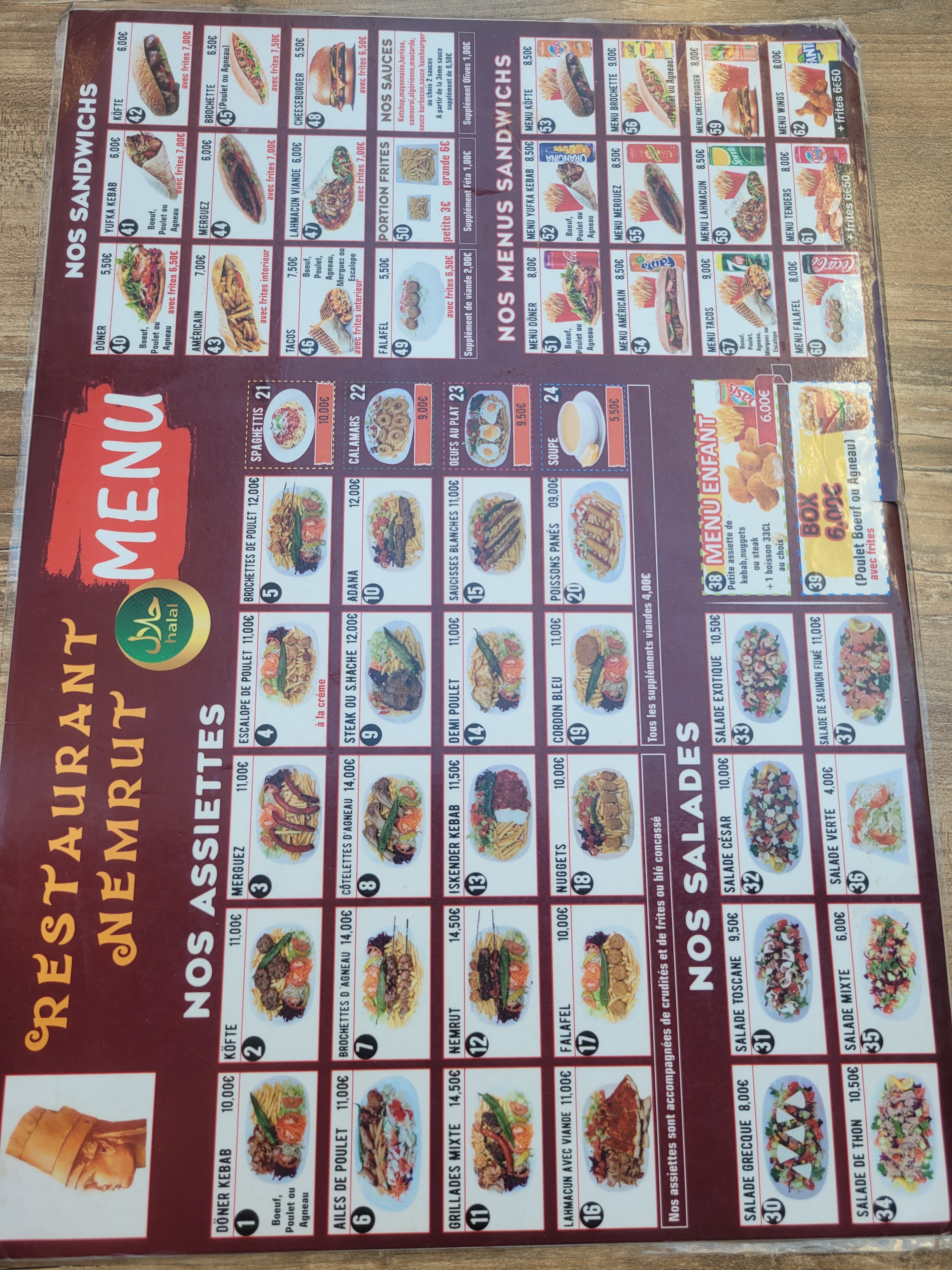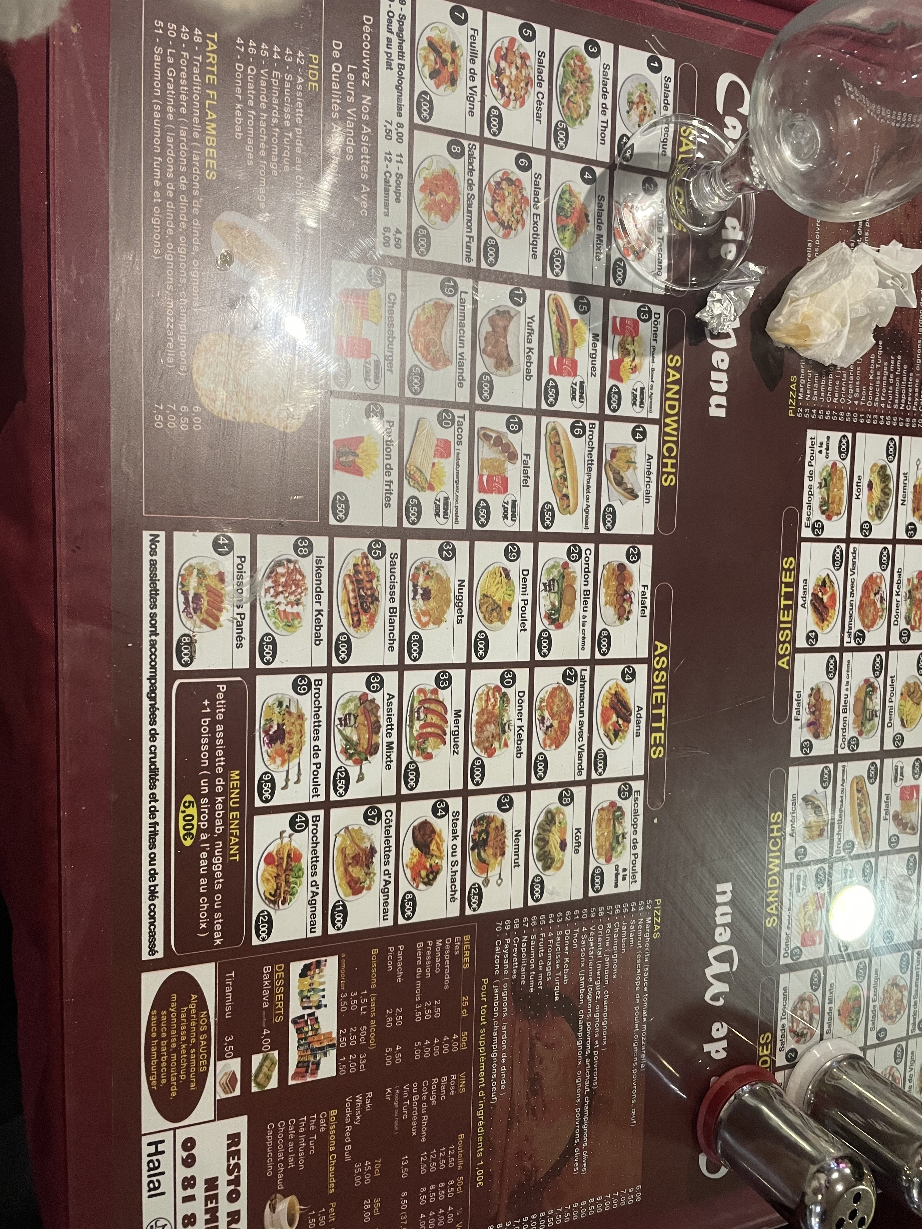 Les plat son bon et les prix équilibré , viande de kebab bonne , mais 5/10 min après j'ai couru au WC , diarrhée de ouf