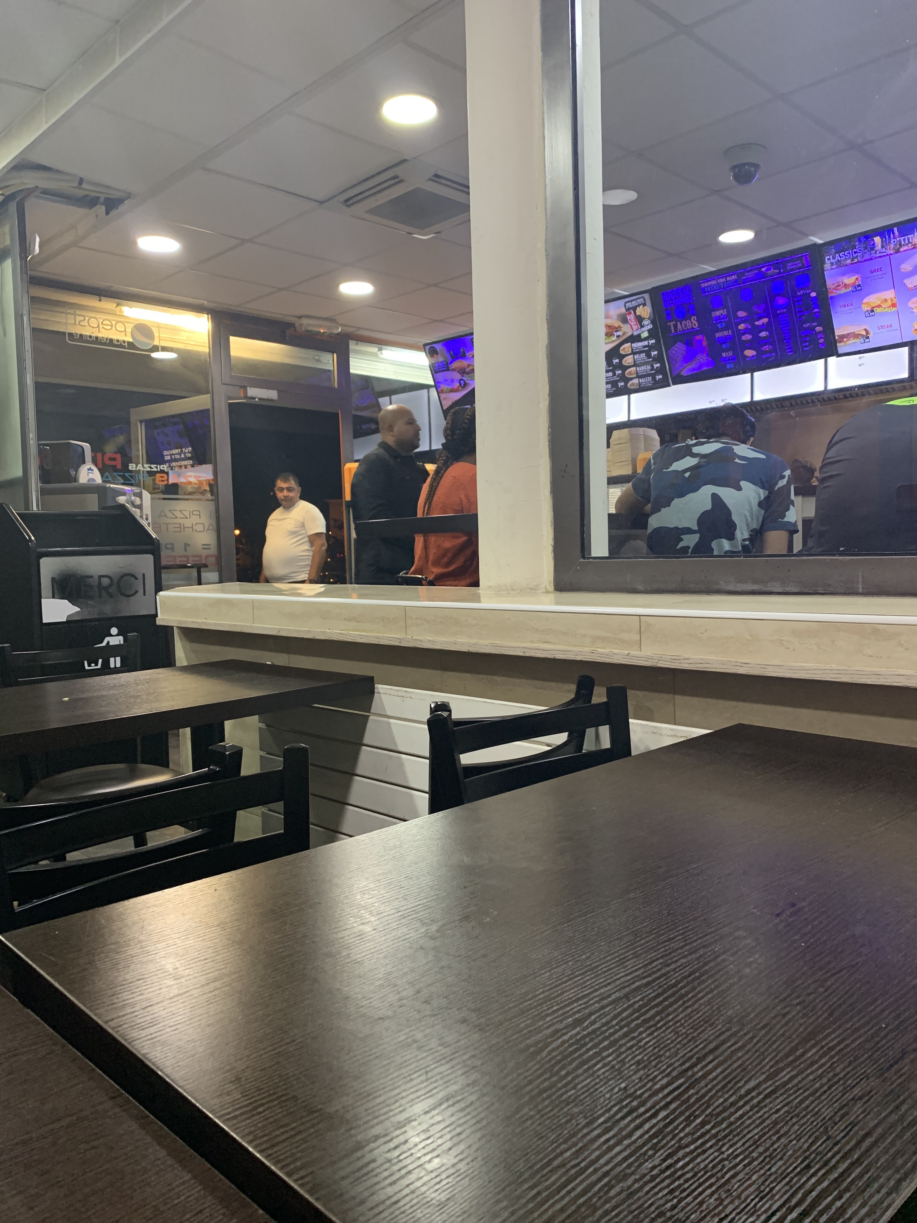 Fast food Propre, large choix de nourriture et de formule très bonne et prix très attractif surtout quand on vois les quantités généreuses servie. J'ai goûter pizza et sandwiches pour l'instant et rien à redire très bon hâte de tester le reste !! 🤤 Caissier très accueillant et courtois. Le + l'application qui est top. on commande avant d'arriver et on paye sur place.