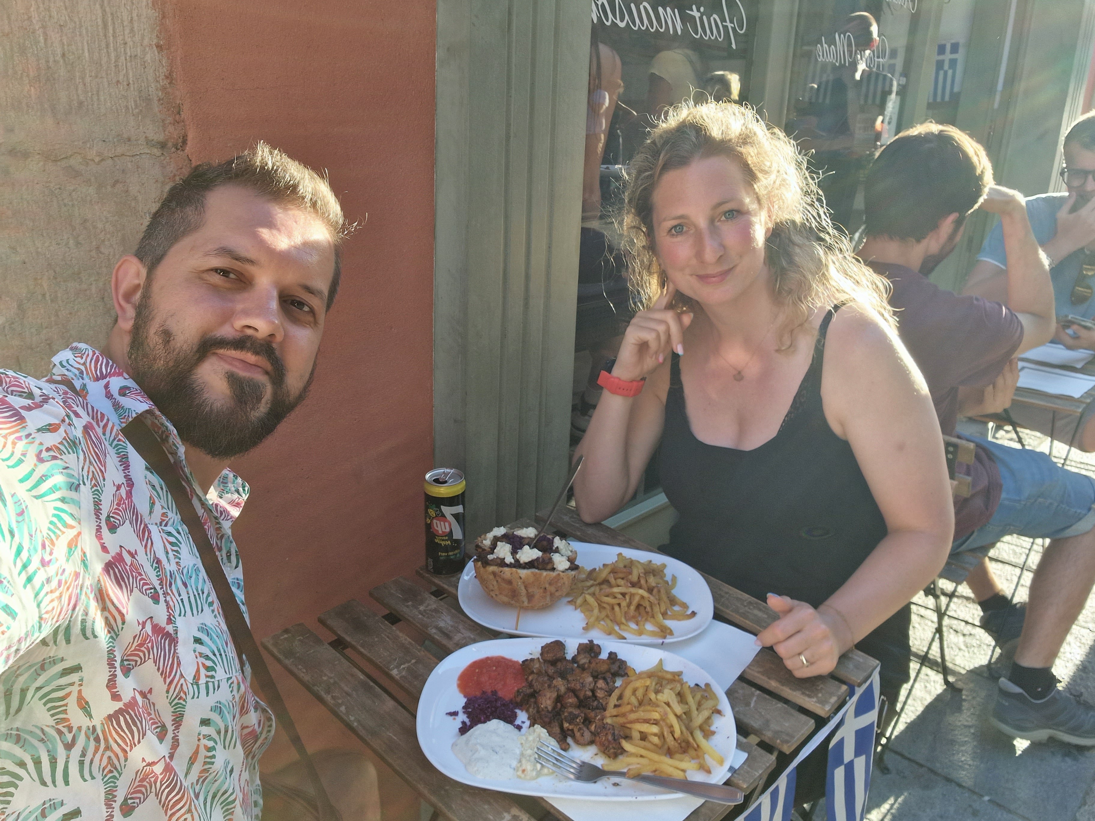 Une expérience culinaire exceptionnelle ! Le gyros et les tartines à la feta étaient tout simplement divin, on pouvait vraiment sentir la passion du chef dans chaque bouchée. La qualité des produits était remarquable, tous locaux, ce qui ajoute une touche authentique. De plus, la viande marinée était d’une tendreté et d’une saveur succulentes, cuite à la perfection à la plancha et enveloppée dans un pain grillé délicieux. Un grand merci au chef pour le partage de sa passion et pour sa gentillesse. Le déplacement depuis la Belgique en valait la peine!!!! Merci aussi à Ness pour ses talents de photographe 🙂