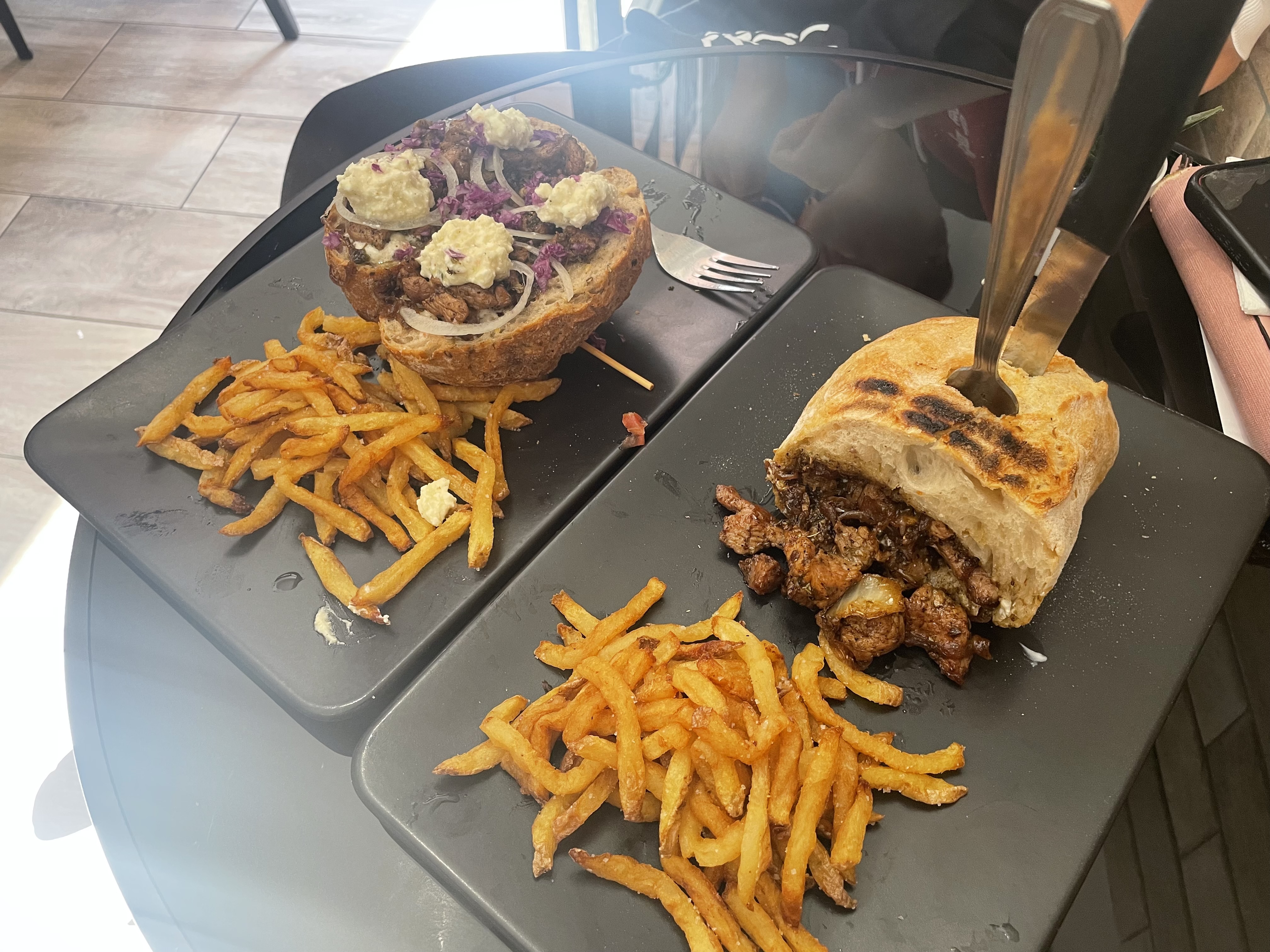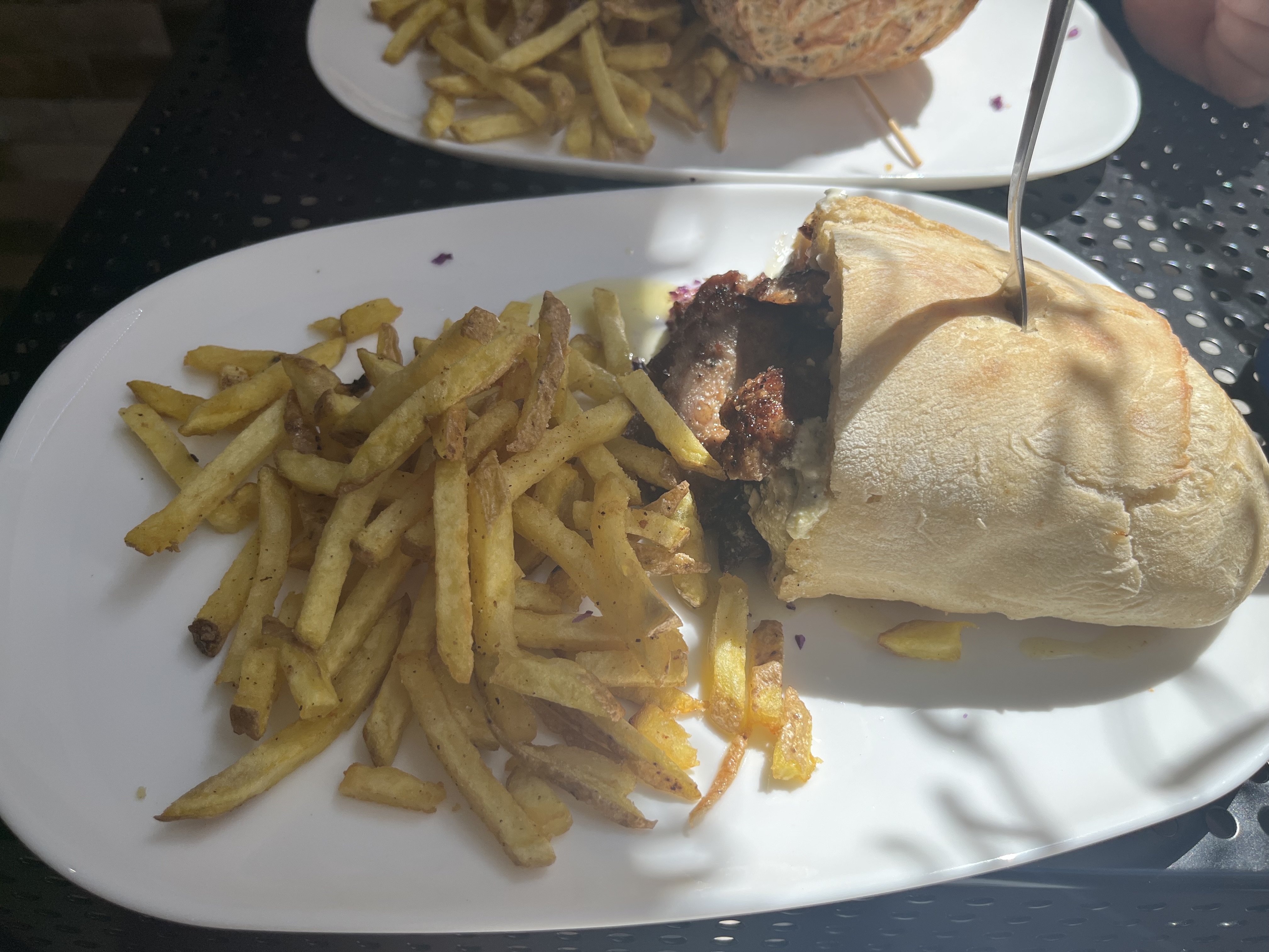 ...les frites ne sont pas si whaou comme prétend le chef...et le sandwich n était pas équilibré trop de choux rouge le pain en était rempli on ne sentait pas l ingrédient principale qui est la feta...du coup un peu déçu ....tout ça servi dans un demi sandwich à 15 € ça fait un peu cher....a amélioré