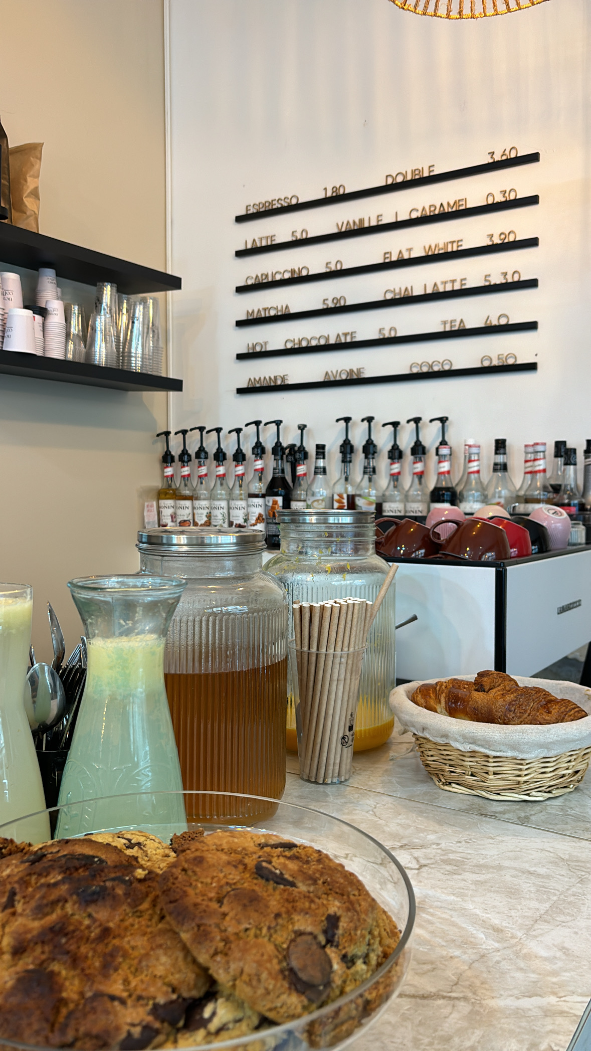 Beau petit café ambiance cosy, clair et lumineux. J'y suis allée deux fois en deux jours et bon accueil, des gaufres pas trop sucrées bien présentées et j'ai pu tester une potentielle nouvelle boisson toute douce à base de fleur d'oranger, dattes, amandes 😋