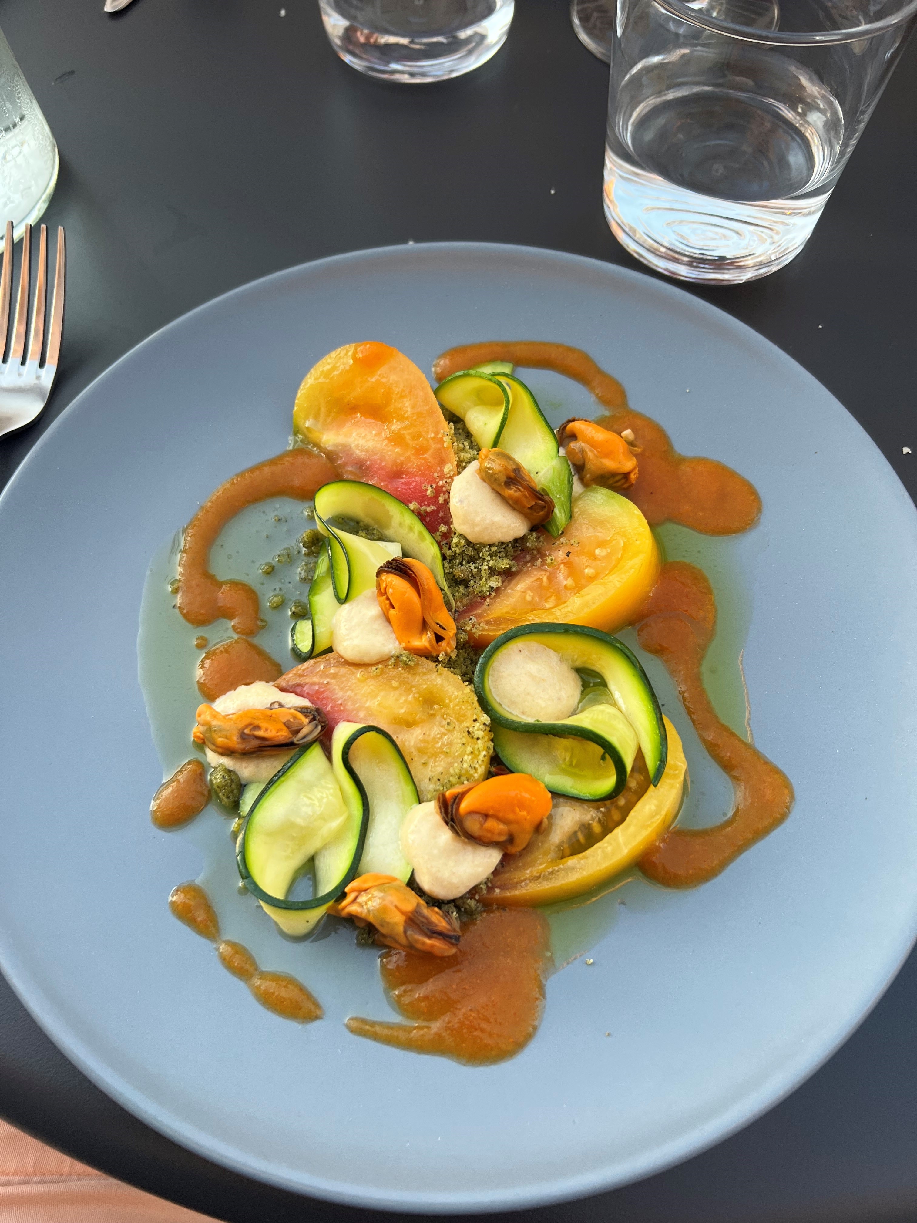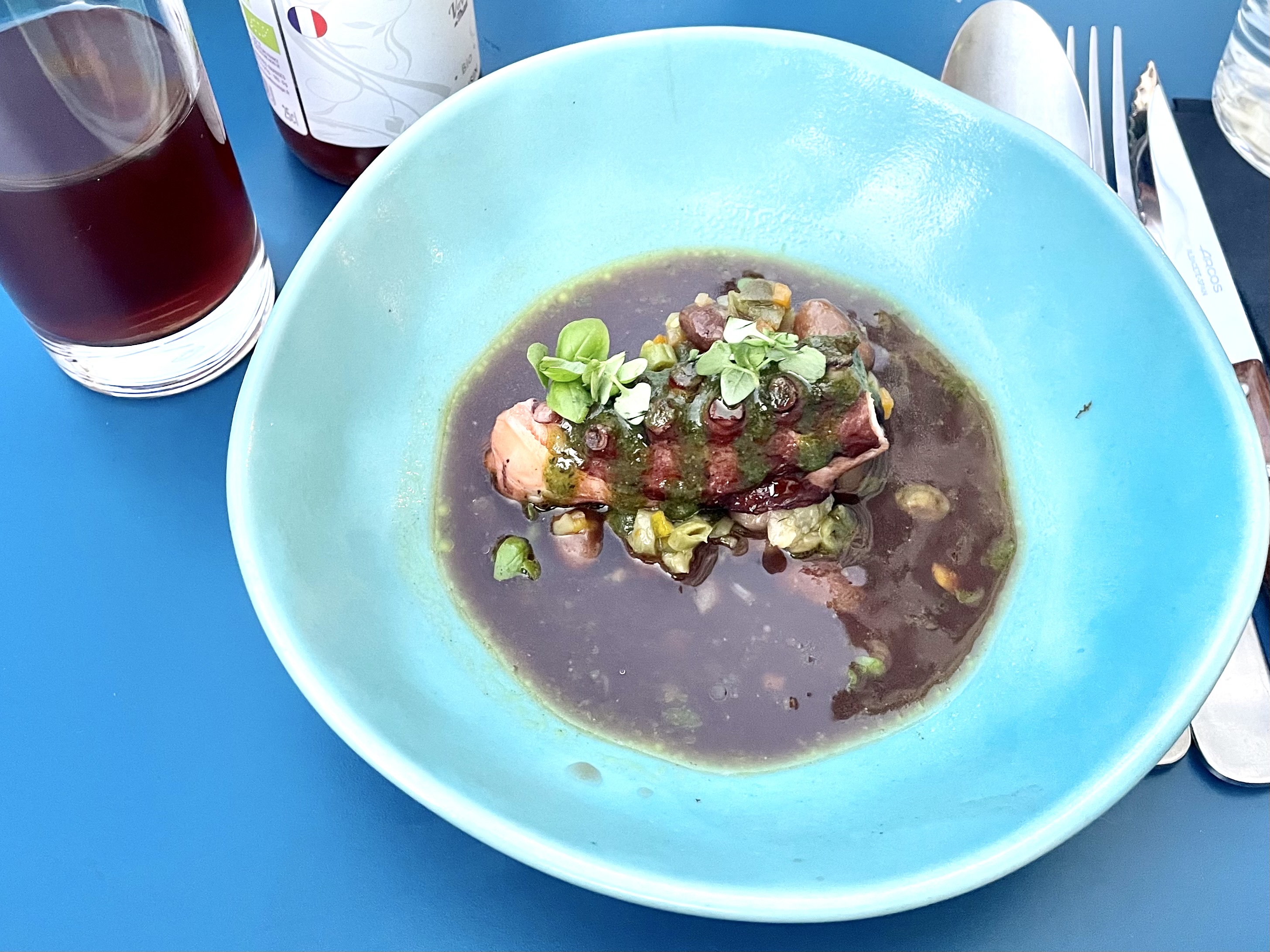 Très bonnes associations de saveurs, je recommande tout particulièrement les gnocchis à l'encre de seiche et couteaux, une tuerie, vraiment : bravo ! Un accueil très chaleureux aussi, pour moi qui n'avais pas réservée. Un conseil n'oubliez pas de le faire, j'ai eu de la chance,mais ce serait bête de passer à côté pour un oubli de résa.😉