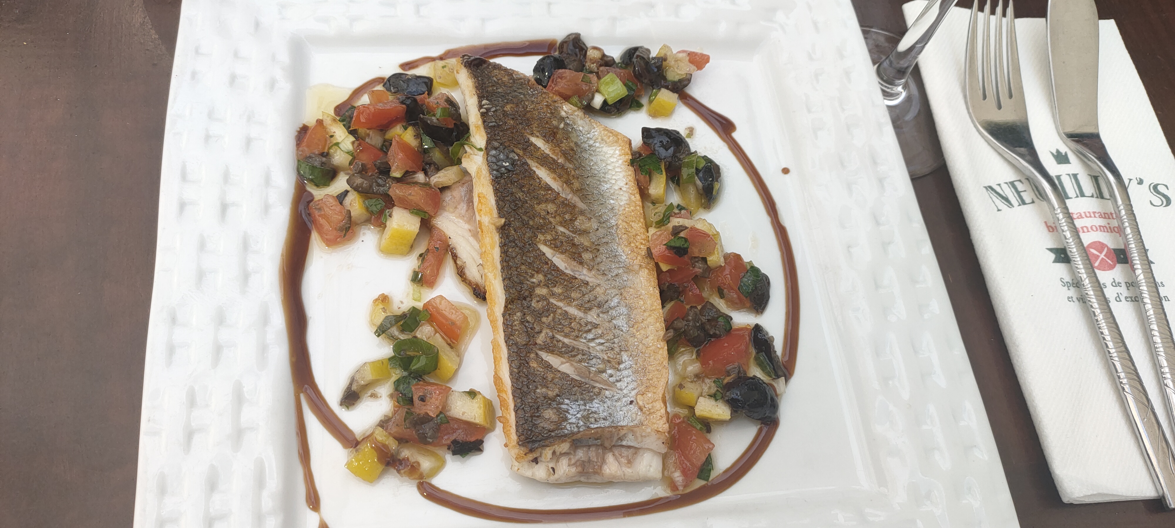 L ensemble était bon mais par contre une dizaine d'arretes dans le filet de bar à 22€ ça reste un petit peu en travers de la gorge. En revanche, un service rapide, efficace et avec le sourire et la terrasse est tres sympa