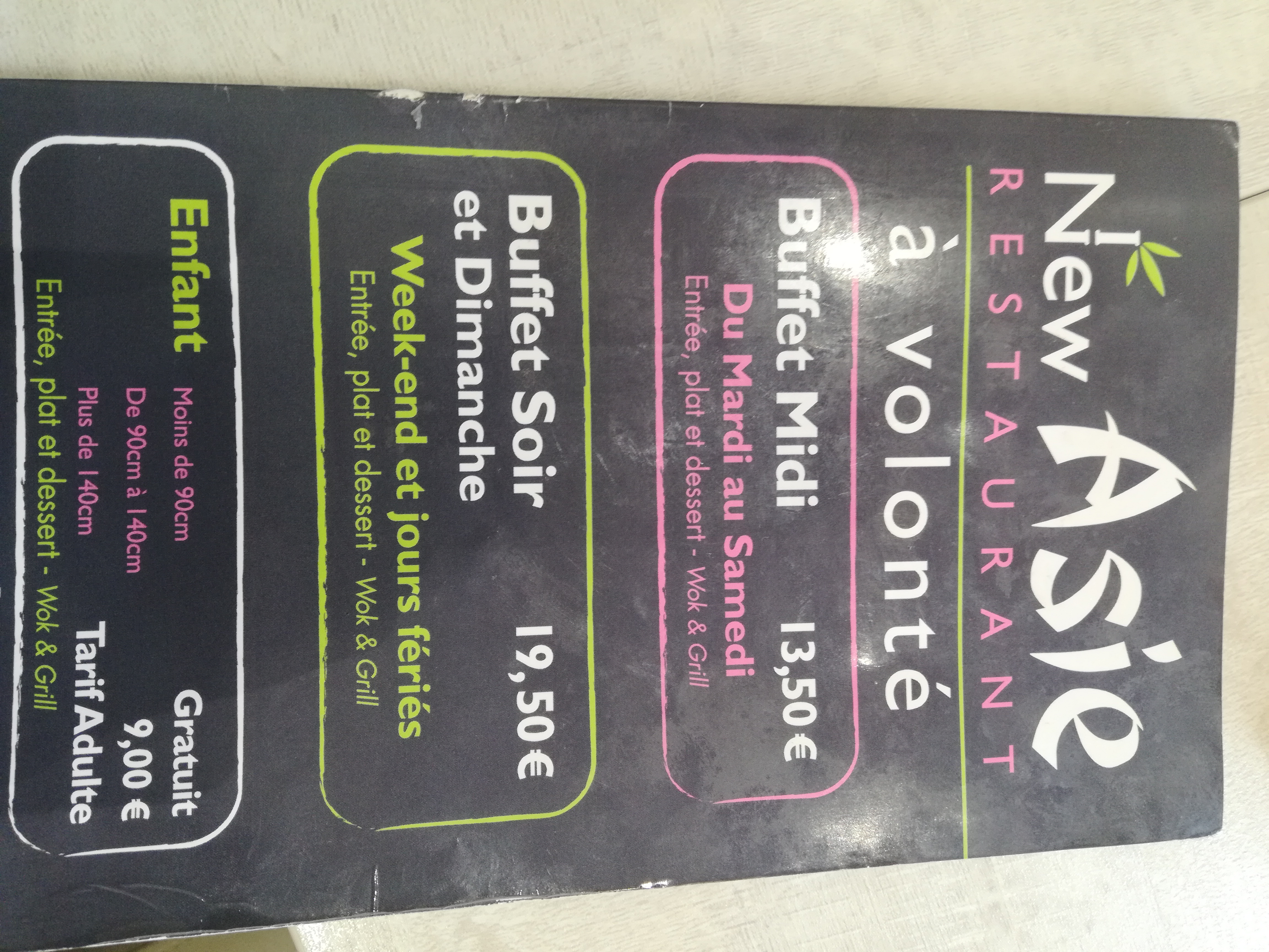 Première fois au new asie et pas déçu. Buffet bien rempli et possibilité de faire du wok et plancha. Il y a également des fruits de mer et pas mal de desserts. +1 pour la machine à chantilly 🍽️🍽️ service impeccable vraiment pas déçu