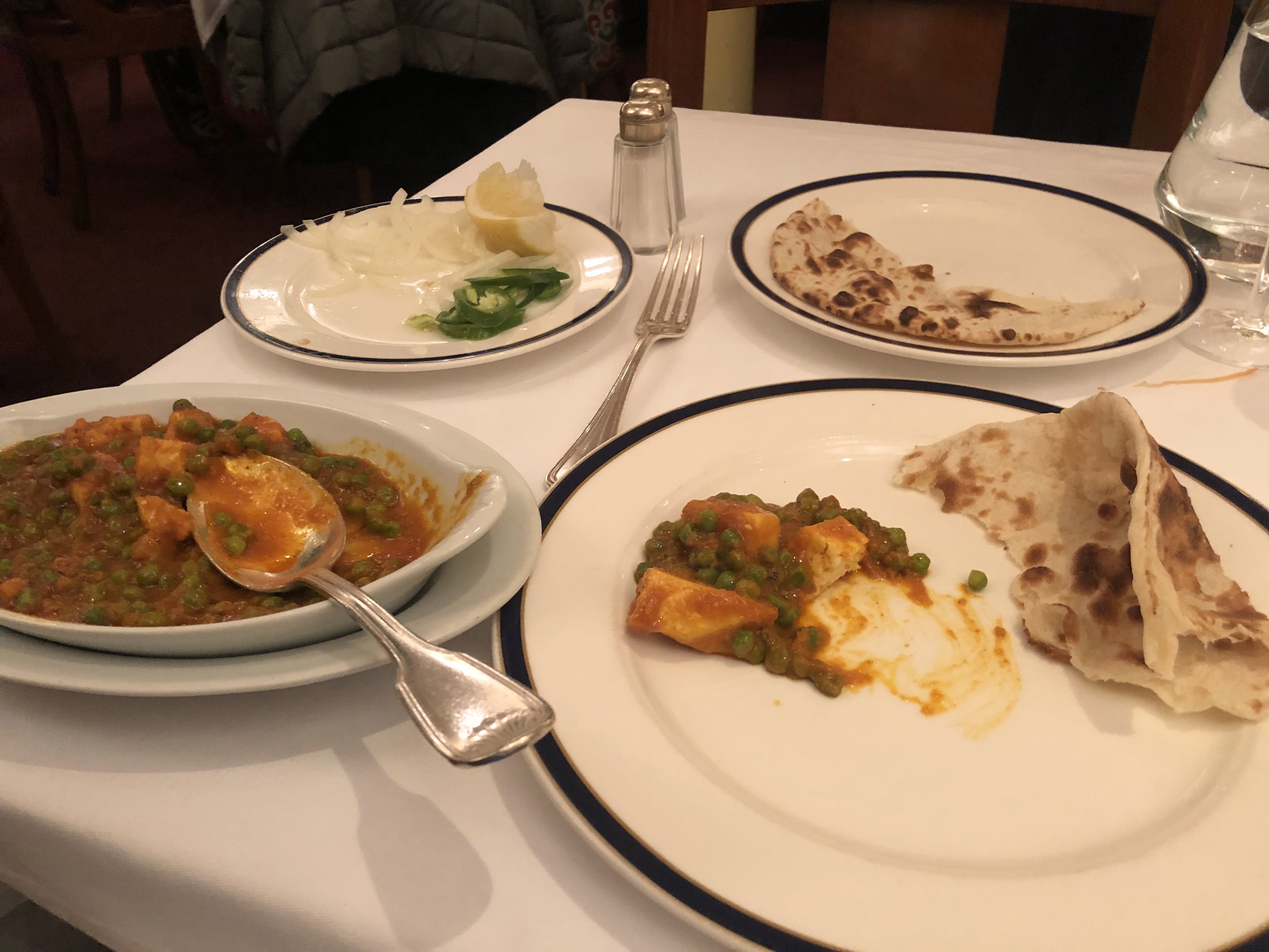 Plats indiens typiques et réussis d'après mes convives ayant vécu en Inde. Nous nous sommes régalés, et avons beaucoup trop mangé, pour 45€ par personne, alcool inclus. Beaucoup de monde, c'est très vivant dans une salle agréable. Évitez la table du fond près de la cuisine et du bipeur Deliveroo qui n'arrête pas de sonner 😂