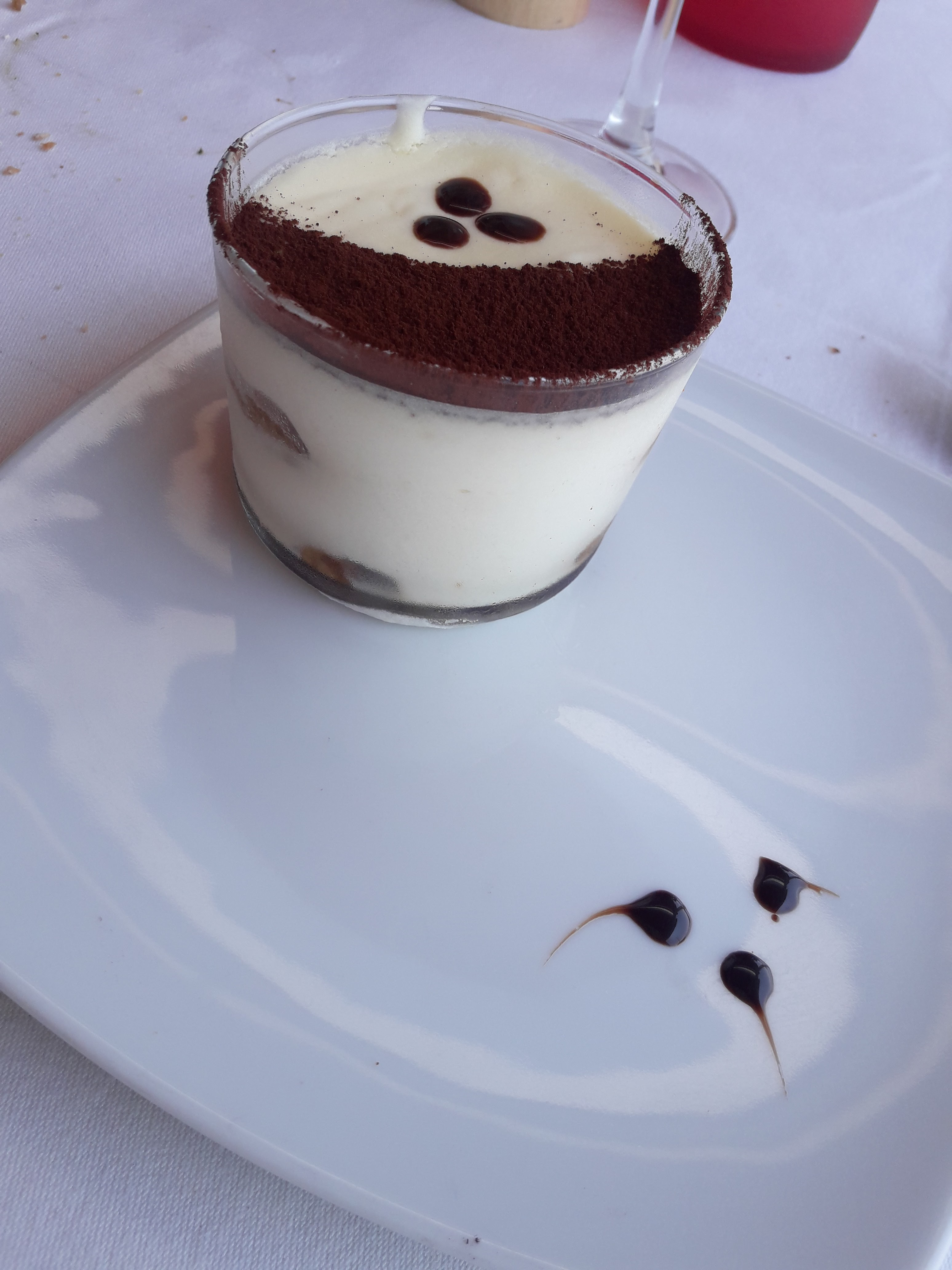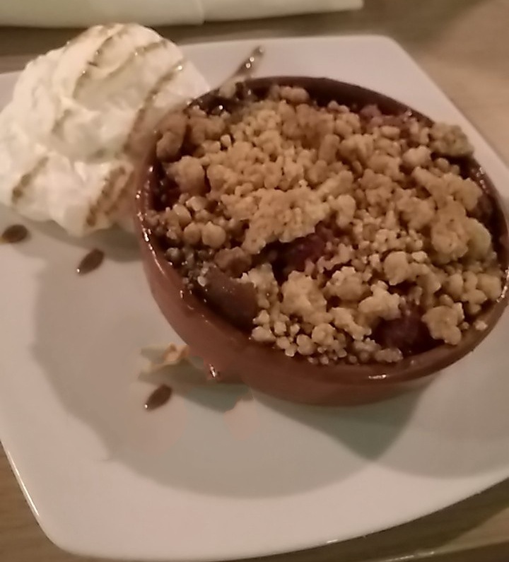 Très bon cuisinier. Apparemment tout est réalisé par ce même cuisinier ; de l'entrée au dessert. Je languis donc de déguster mon dessert! Merci pour ce loup et ces gambas. Ça y est le dessert est là...! Hummm!