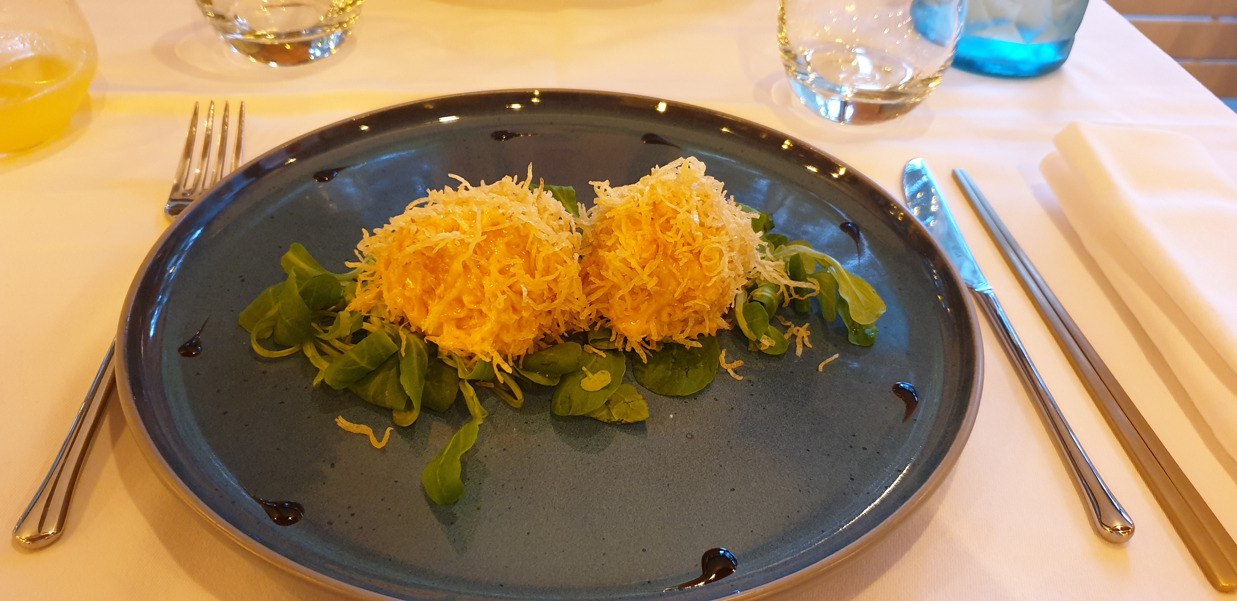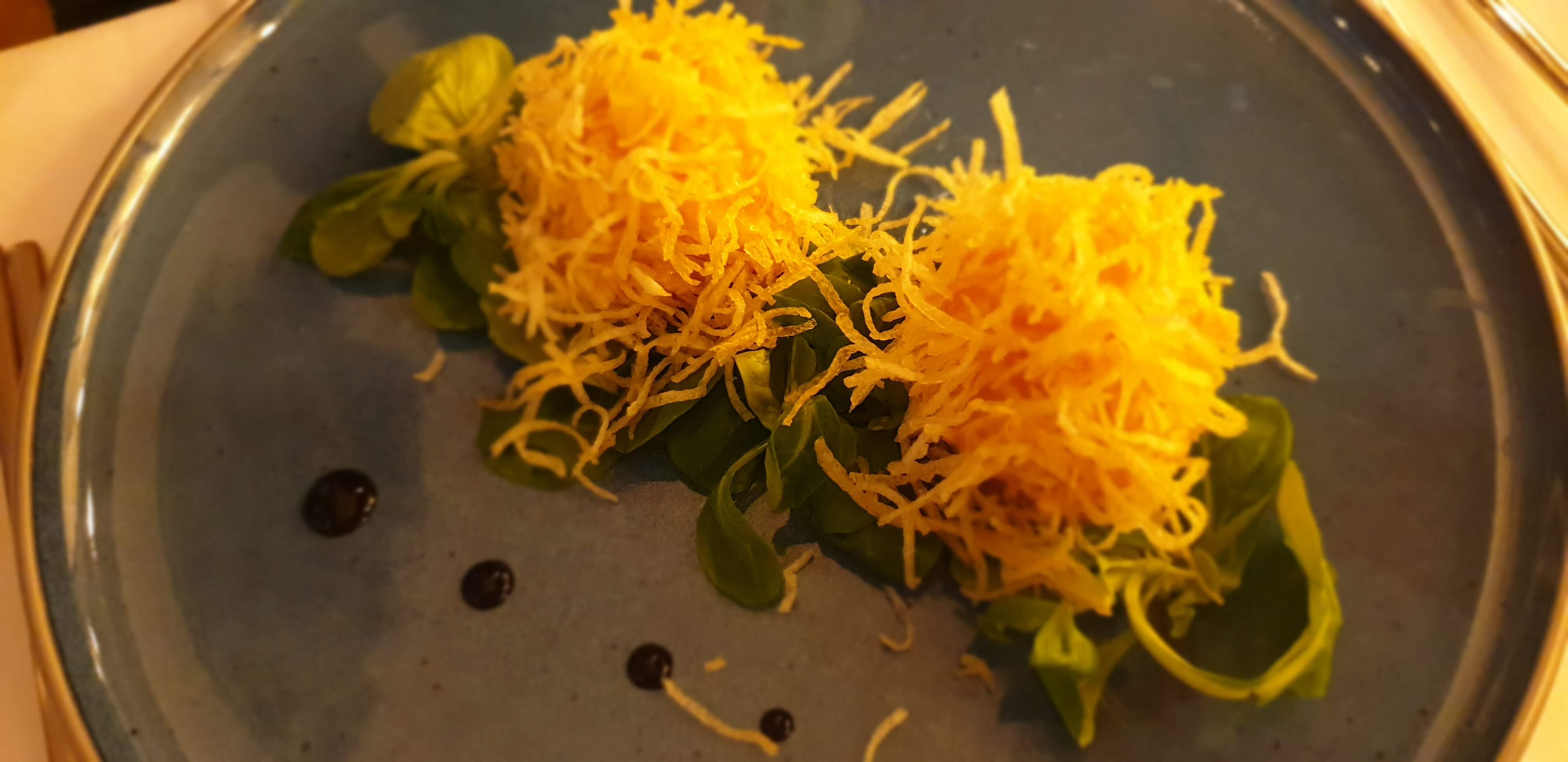 Une cuisine originale et agréable. Des saveurs surprenantes comme le bouillon d'œuf et maïs en amuse bouche. Canard avec une bonne sauce et une belle friture mais un peu sec. Je recommande les ravioles de gambas et sauce à la courge en entrée.