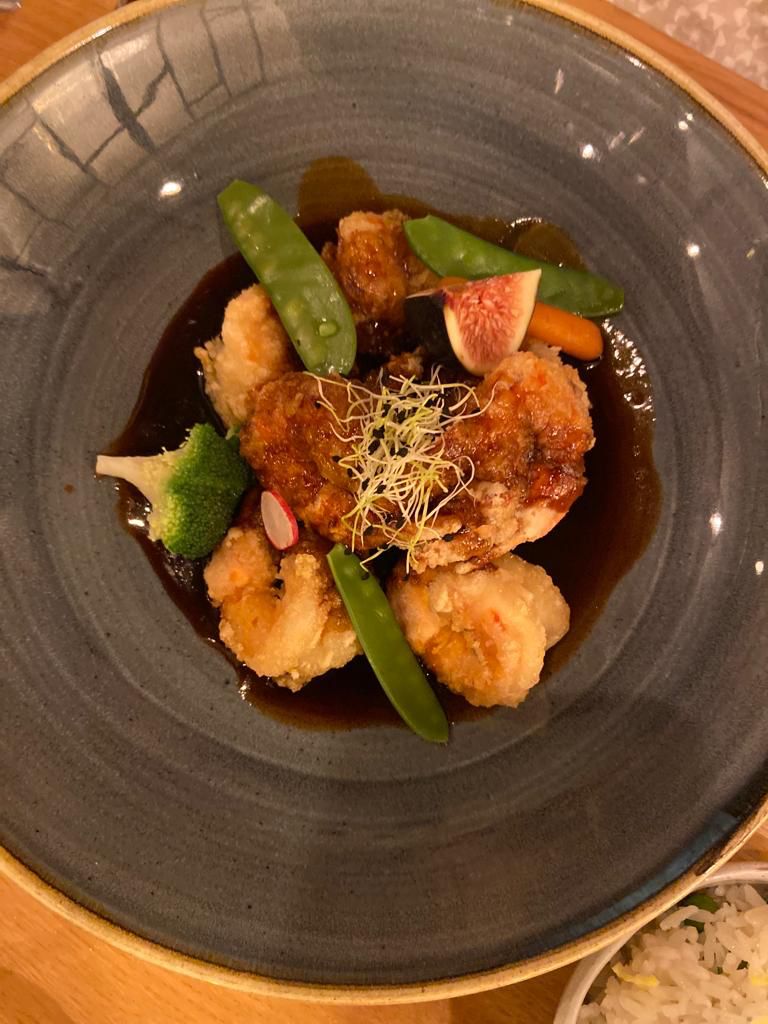 Dans le menu carte blanche à 39 euros, vous n’avez pas le choix des plats, ils sont imposés et contiennent de la viande. Nous avons pris à la carte une entrée et deux plats. Pour les raviolis, il n’y en avait que 2 dans l’assiette, pour les crevettes caramélisées, la sauce n’était franchement pas terrible et le canard ne valait pas 23 euros. Pour le prix je pense qu’on peut mieux faire en quantité et en qualité. Je n’ai pas compris le cocktail maison qui était en fait du jus d’orange avec des glaçons dans un verre. 70 euros pour 3 plats, c’est bof !